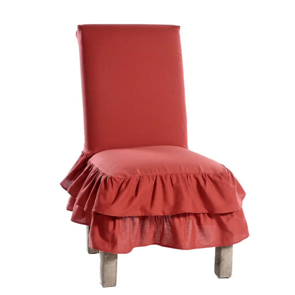 These fancy chair cover slipcovers has 3 layers of ruffles for a festive feel. Plus, it fits easily over most dining chairs with a relaxed fit and can be secured with back ties. It's made of 100% cotton, making it durable and soft. You can use this dining chair cover on special occasions to dress up your dining room or use it every day to give your dining room a fresh look. For square back dining chair up to 41" tall and 20" wide.