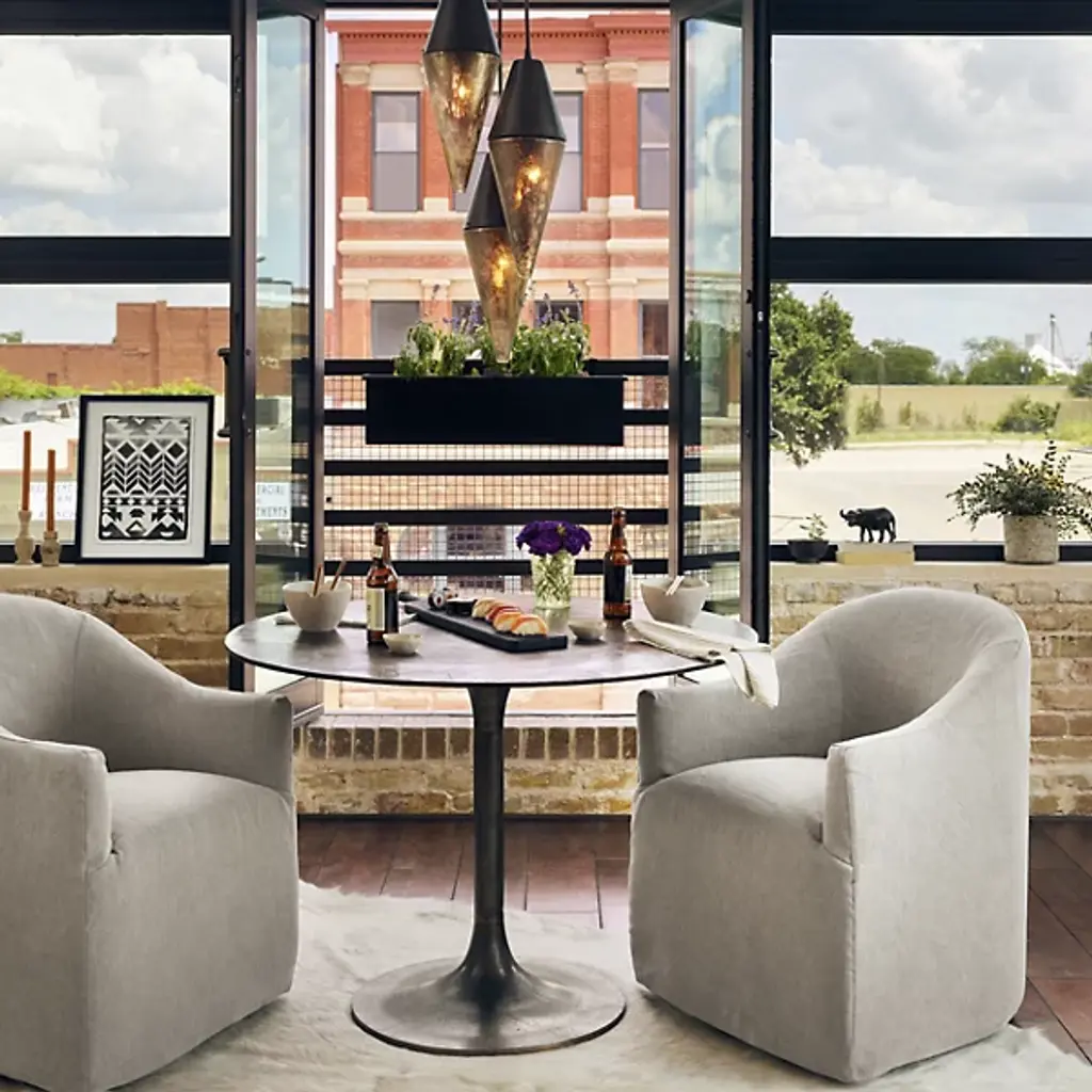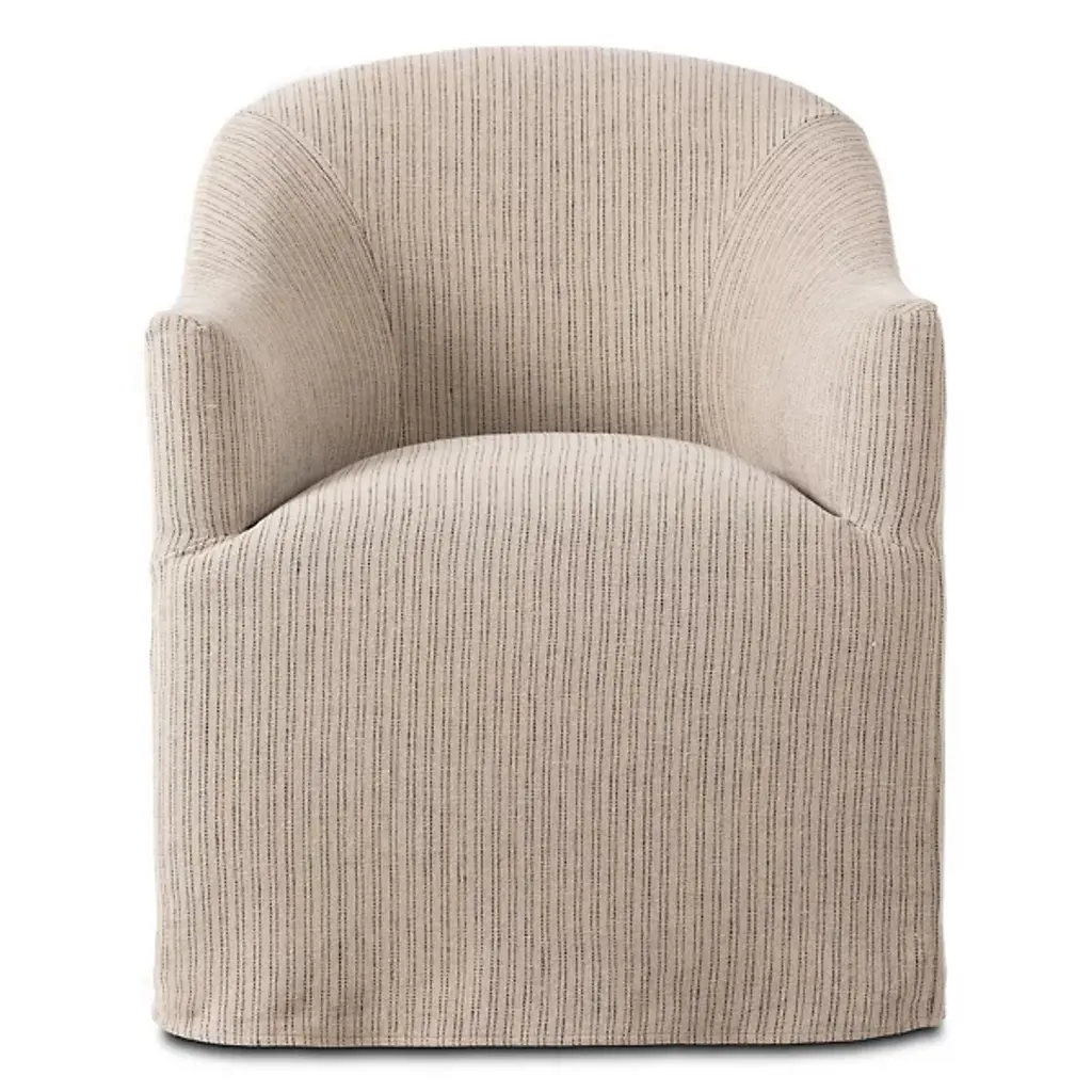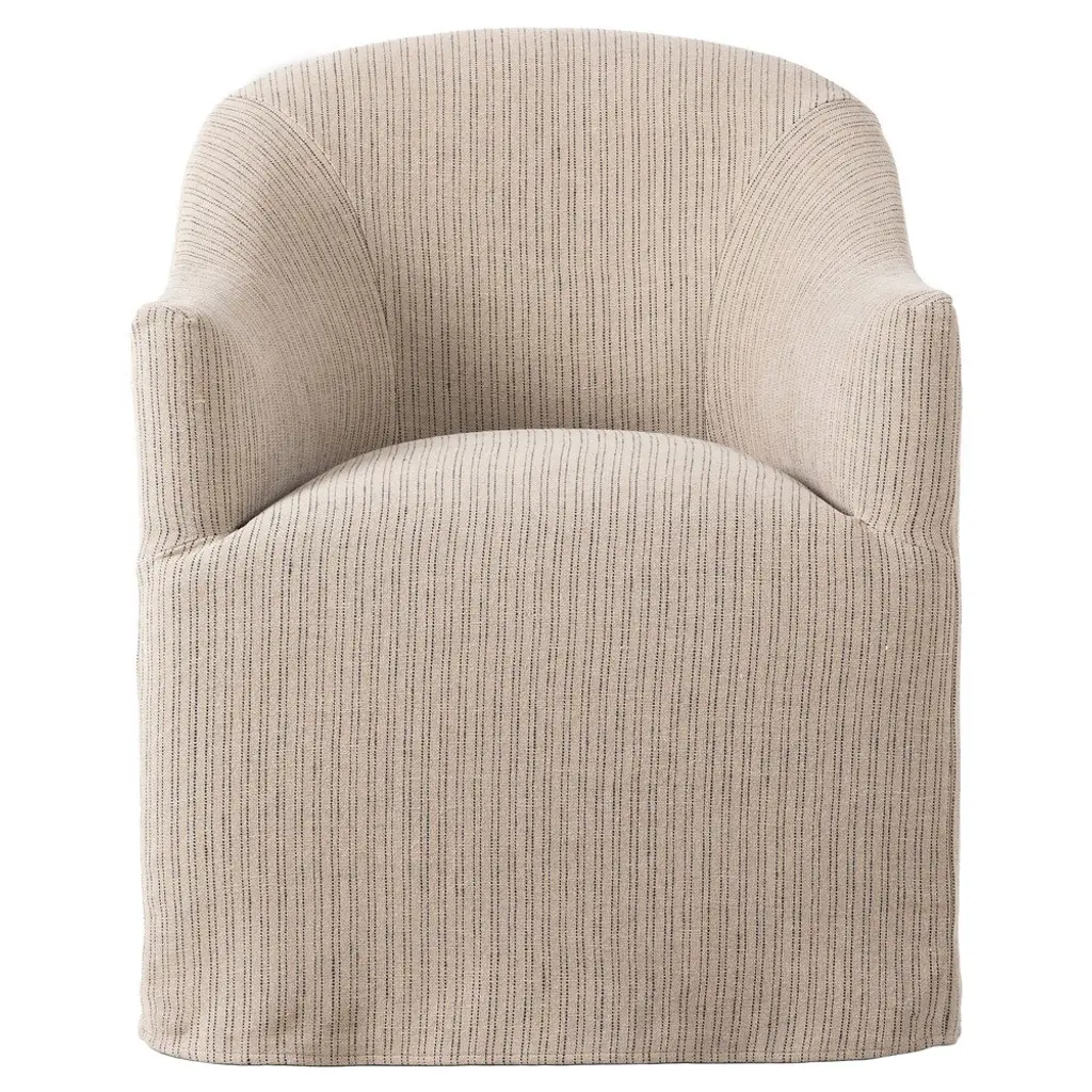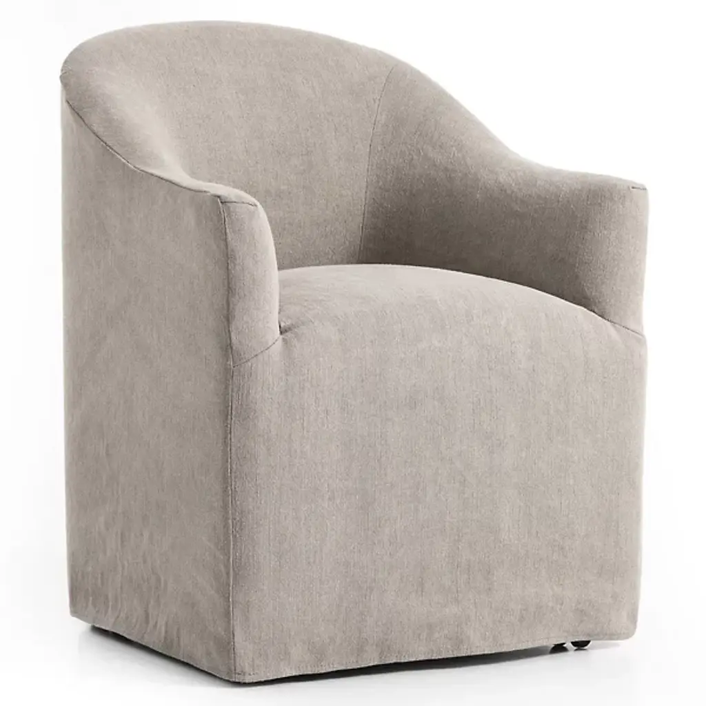 Bring an element of artistry into your living space with the Cove Dining Chair With Casters by Four Hands. This chair features an even blend of jute and cotton, letting you dine in a state of maximum comfort. Your chair features short arms and a voluminous seat so that you are neatly enveloped by this seat’s fine contours. The Cove Dining chair’s uniform appearance makes it versatile. This furnishment is well-suited for your urban-living interior.