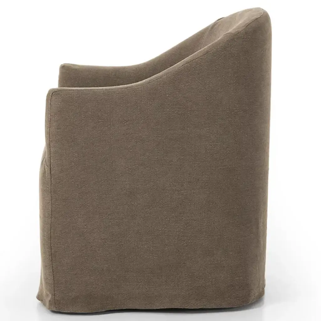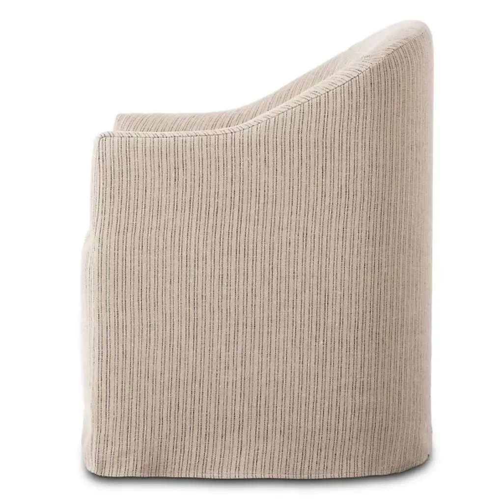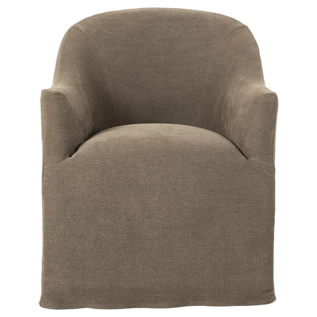 Bring an element of artistry into your living space with the Cove Dining Chair With Casters by Four Hands. This chair features an even blend of jute and cotton, letting you dine in a state of maximum comfort. Your chair features short arms and a voluminous seat so that you are neatly enveloped by this seat’s fine contours. The Cove Dining chair’s uniform appearance makes it versatile. This furnishment is well-suited for your urban-living interior.