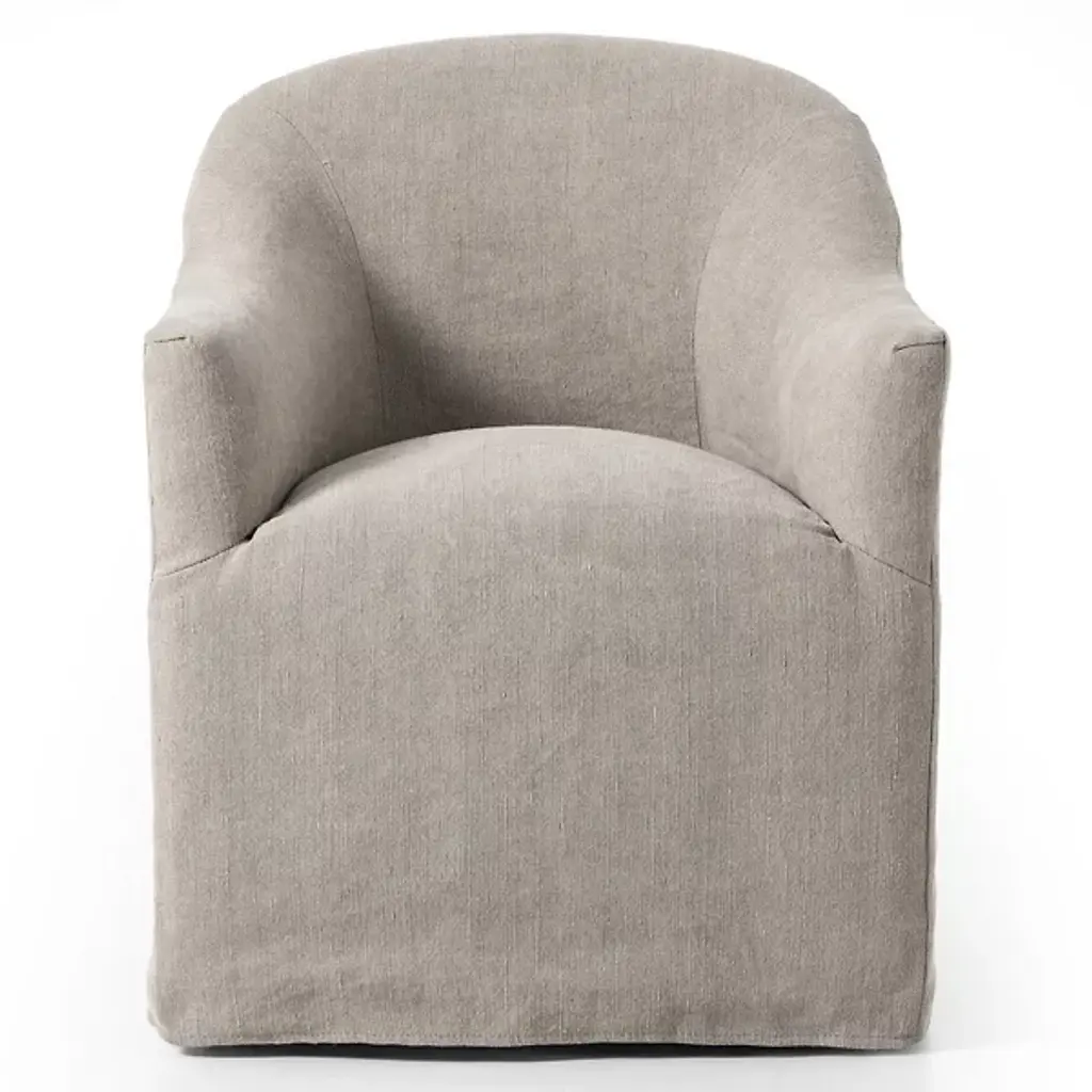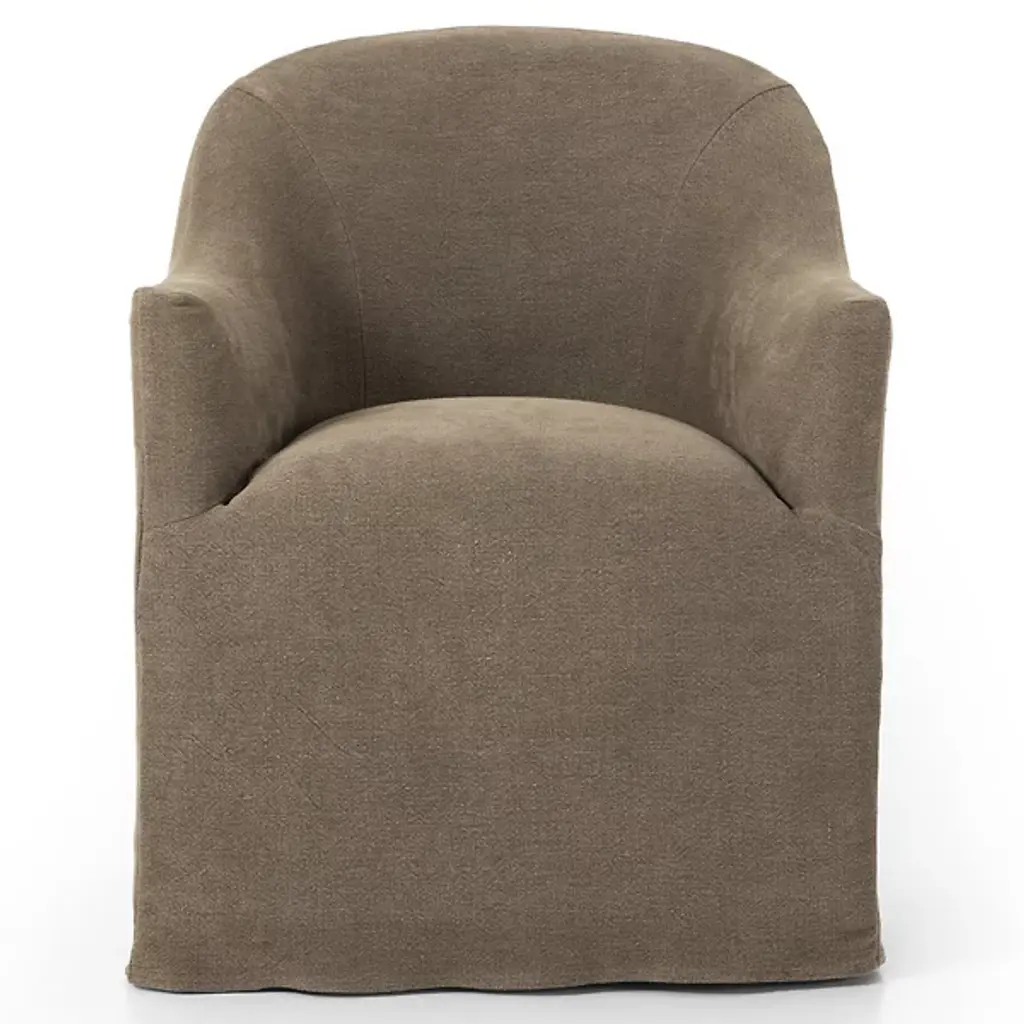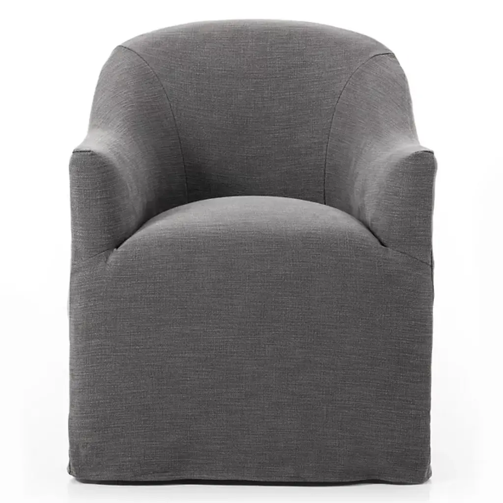 Bring an element of artistry into your living space with the Cove Dining Chair With Casters by Four Hands. This chair features an even blend of jute and cotton, letting you dine in a state of maximum comfort. Your chair features short arms and a voluminous seat so that you are neatly enveloped by this seat’s fine contours. The Cove Dining chair’s uniform appearance makes it versatile. This furnishment is well-suited for your urban-living interior.