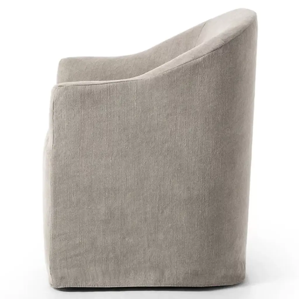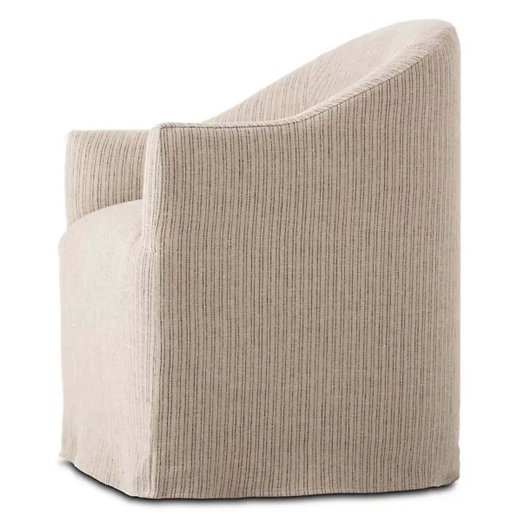 Bring an element of artistry into your living space with the Cove Dining Chair With Casters by Four Hands. This chair features an even blend of jute and cotton, letting you dine in a state of maximum comfort. Your chair features short arms and a voluminous seat so that you are neatly enveloped by this seat’s fine contours. The Cove Dining chair’s uniform appearance makes it versatile. This furnishment is well-suited for your urban-living interior.