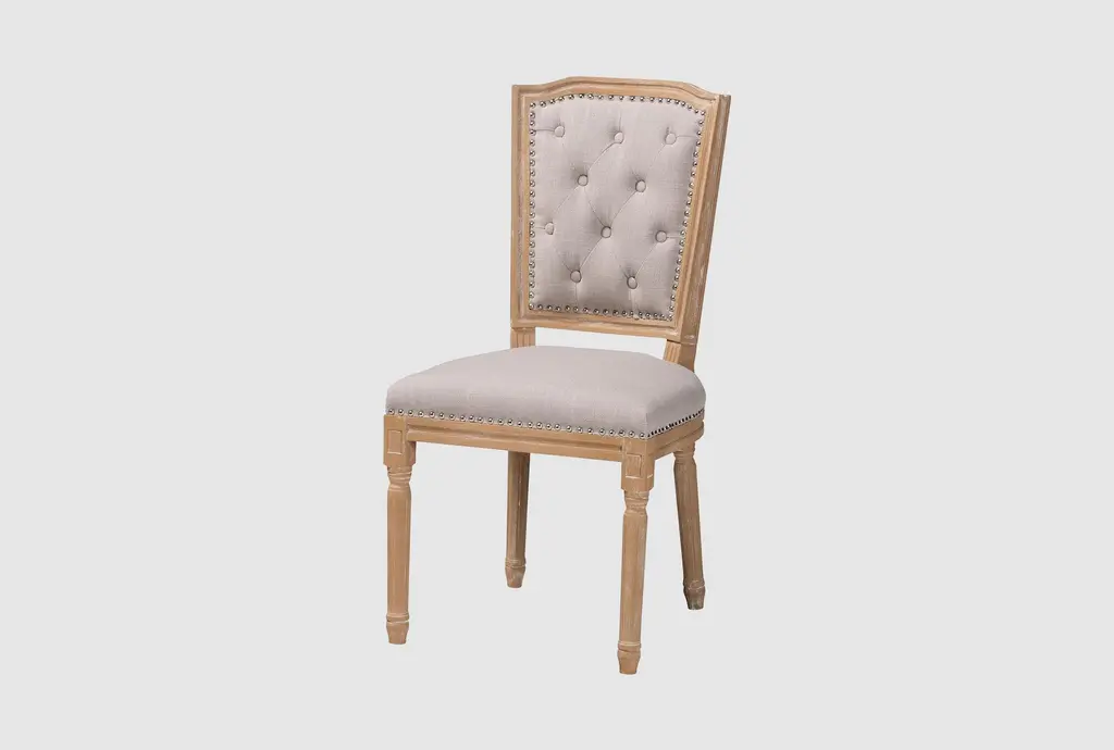 Reinvent your style and comfort with the Coventry Side Chair Set of 2. Crafted of rubberwood solids in a dusty taupe finish with a tufted back in truffle linen fabric. Also offers web seating for comfort, nylon chair glides to protect your flooring and anchored with tapered legs