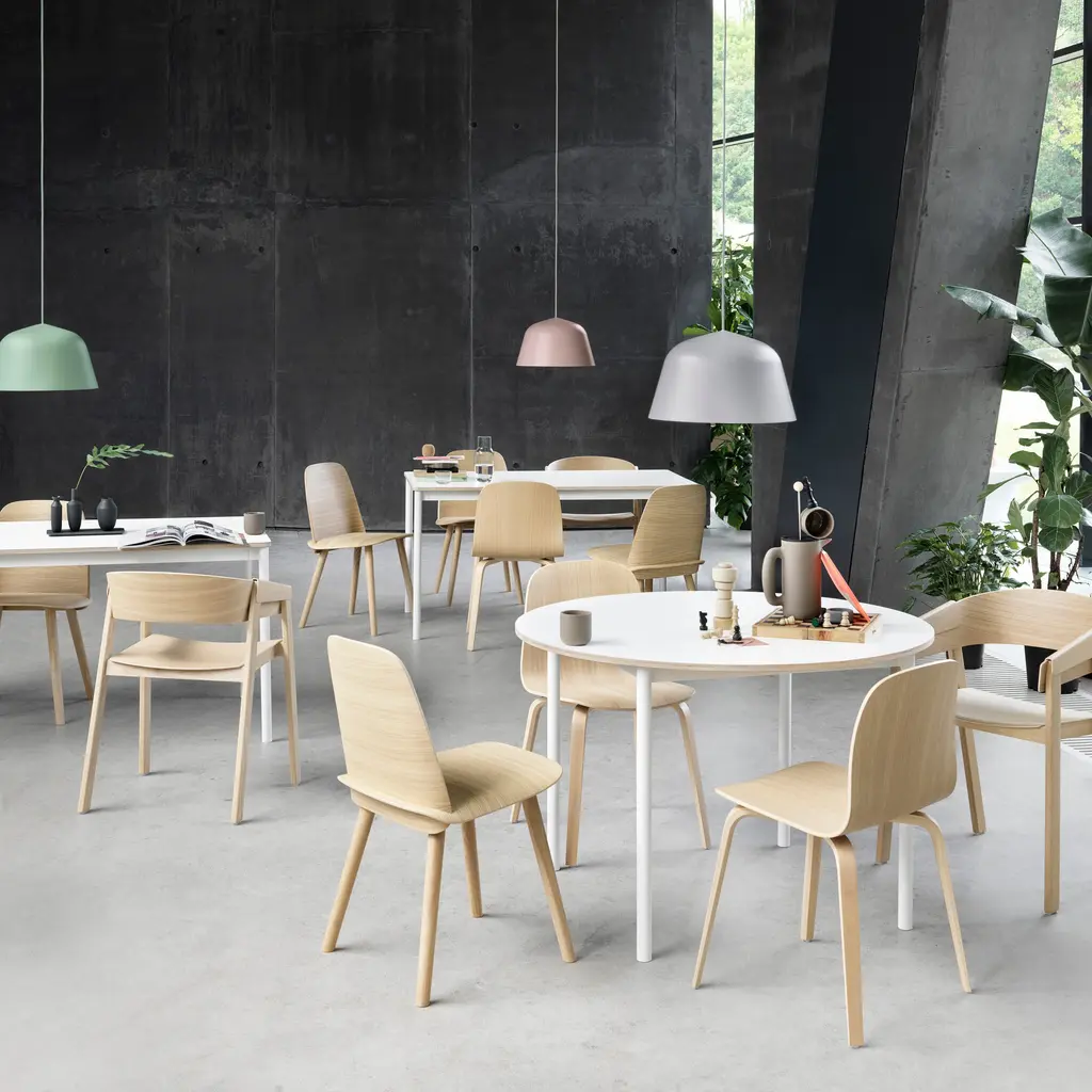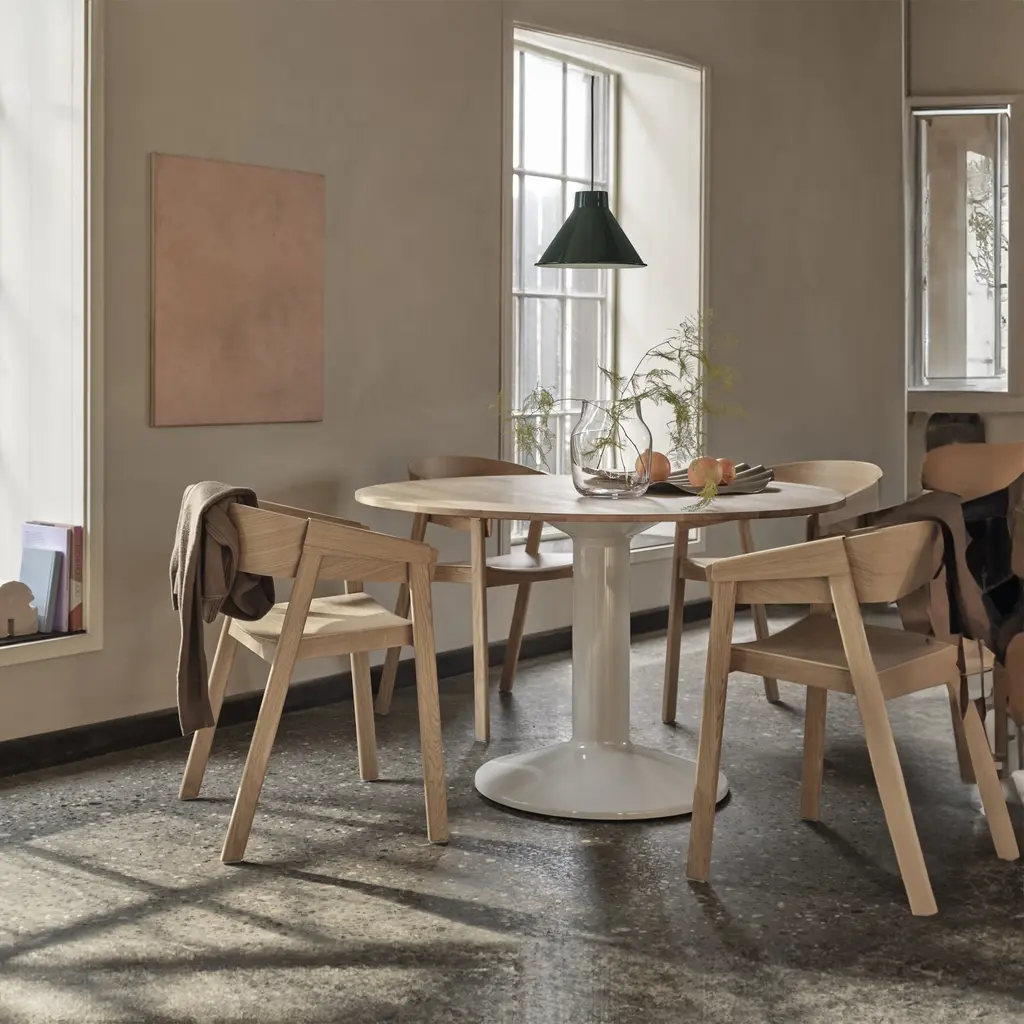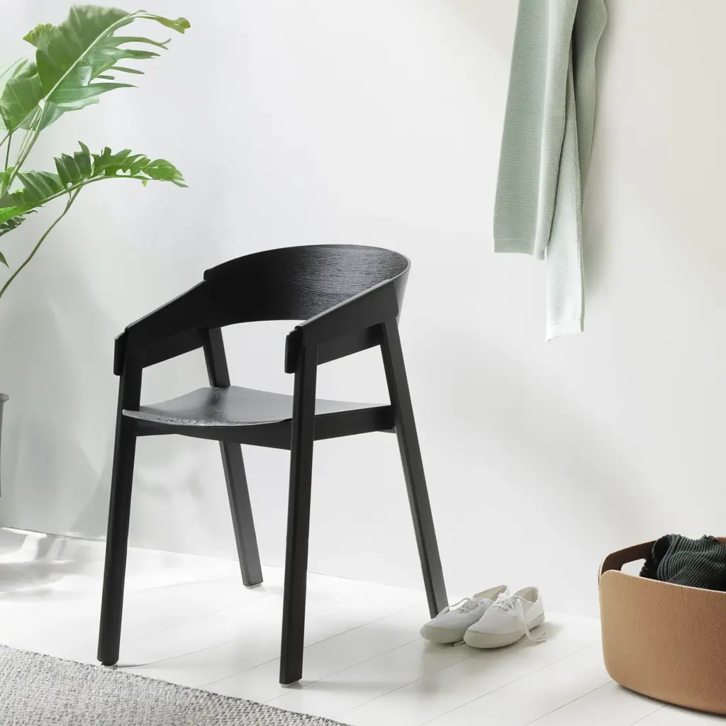 By pushing it to the limit, as the saying goes, renowned Copenhagen designer Thomas Bentzen says he achieved his heart's desire in the Cover armchair. Going for a crisp update on the traditional shape, he spent 3 years playing with the twists and turns of molded veneered plywood to create lightweight but exceptionally sturdy seating. Produced by Danish brand Muuto, the chair is made without any metal parts. Instead it is locked together by the bent veneer armrests. In lacquered ash in a variety of hues or natural oak veneer, Cover is highly adaptable as a desk or dining chair or on its own as an accent piece.