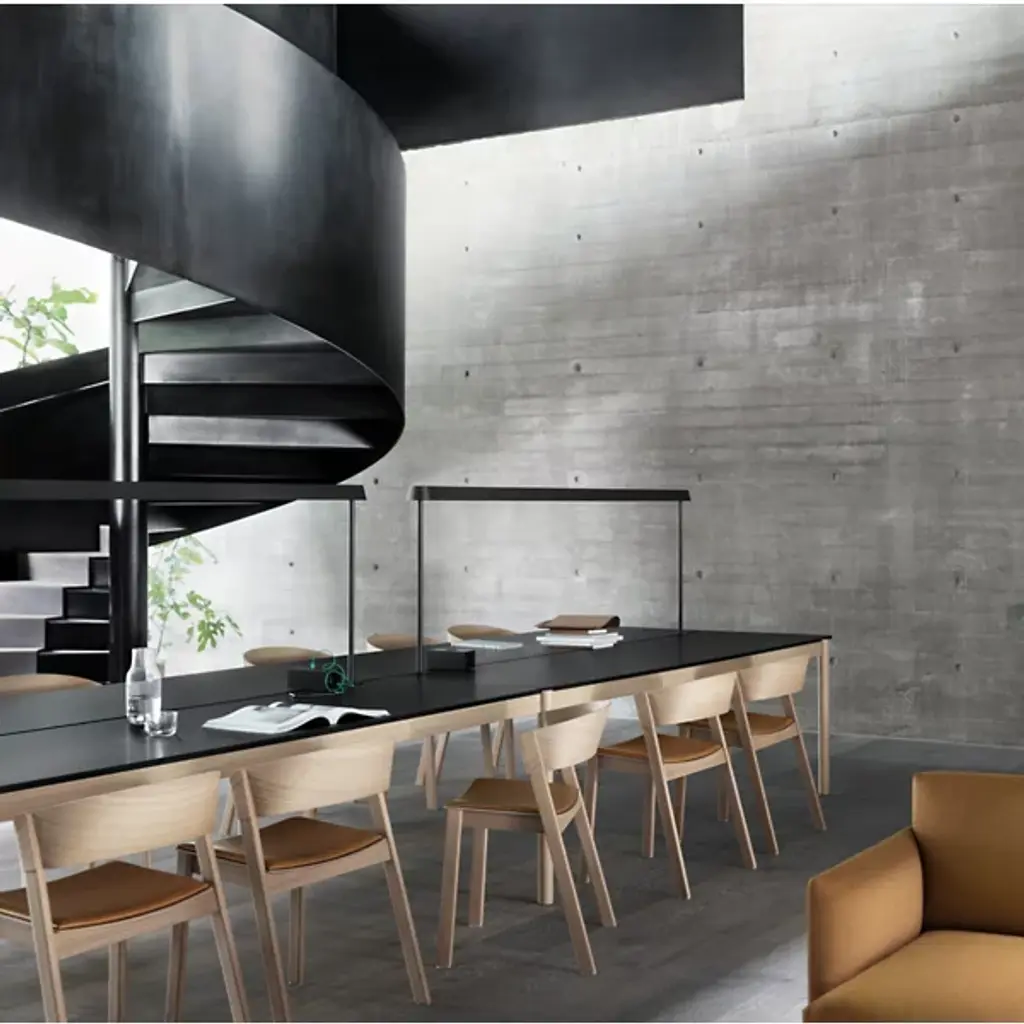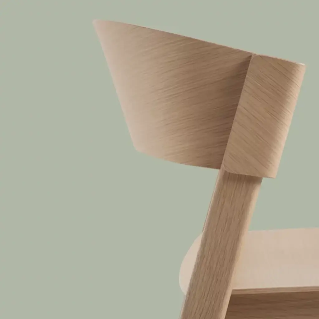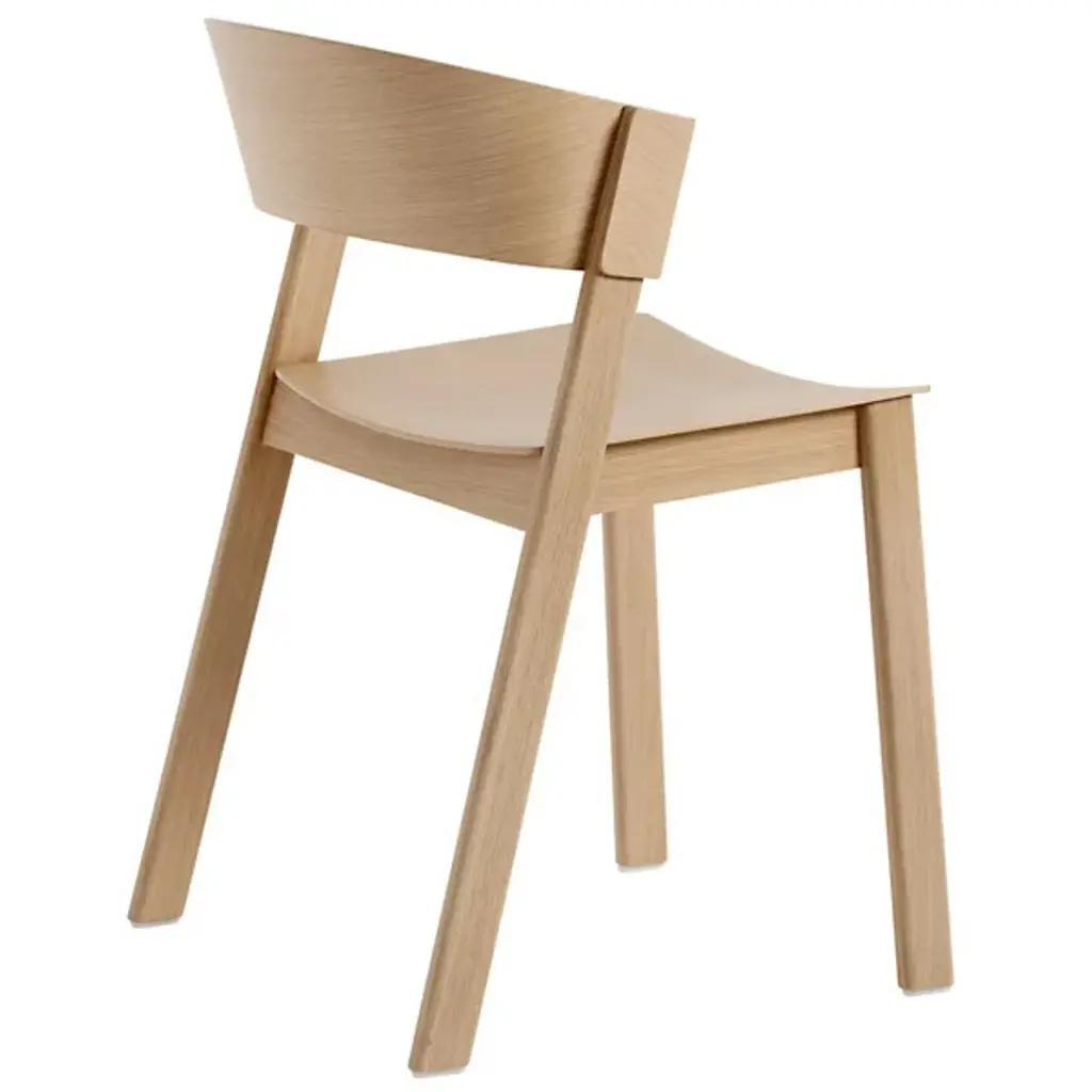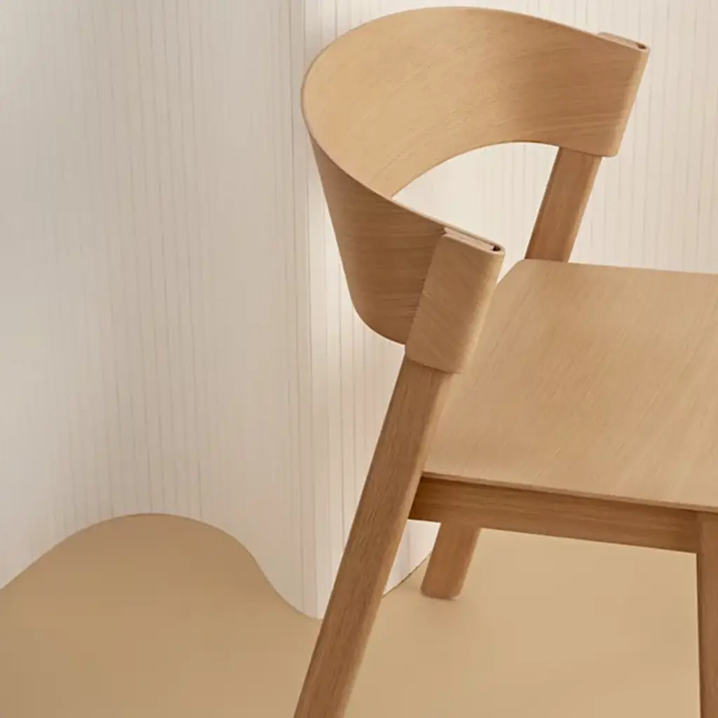 Stylish, open, and playfully functional. The Cover Side Chair from Muuto is a contemporary structure that rises from four angular legs into a sculptural assembly of smooth wood surfaces. The front legs are shorter, while the rear legs angle forward to secure a curving seatback over a clean-surfaced seat with a shallow concave curve. This open construction takes on a Scandinavian style and is also stackable, allowing several seats to sweep out across its surroundings or be stored away as needed.