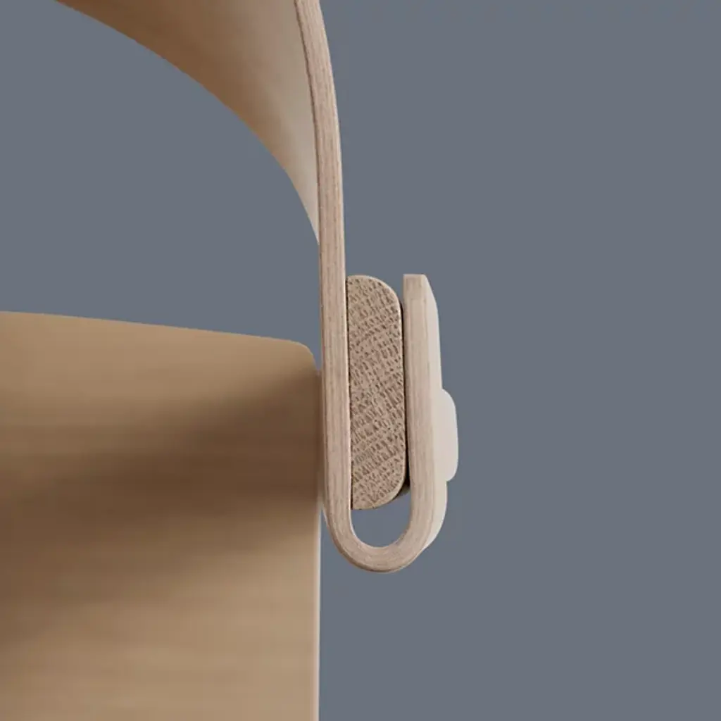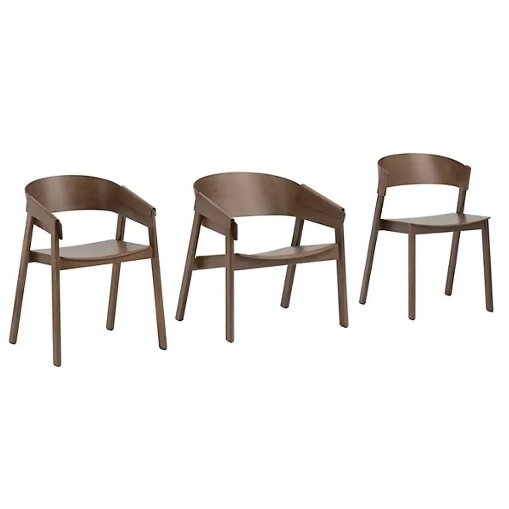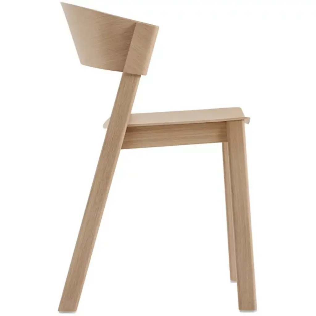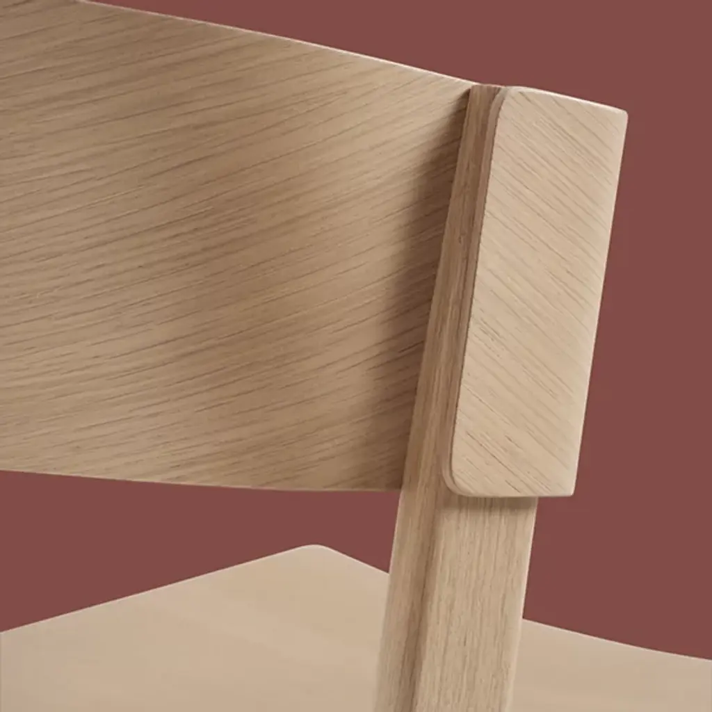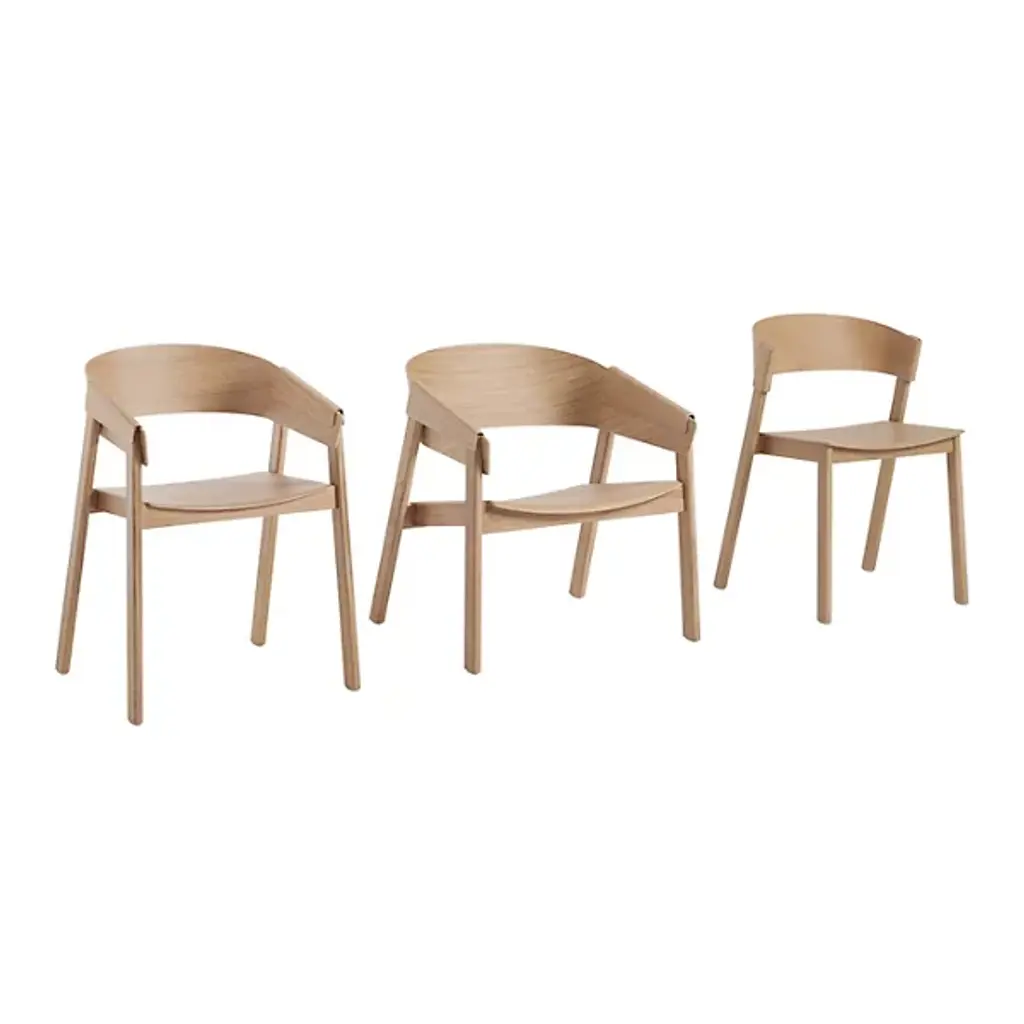 Stylish, open, and playfully functional. The Cover Side Chair from Muuto is a contemporary structure that rises from four angular legs into a sculptural assembly of smooth wood surfaces. The front legs are shorter, while the rear legs angle forward to secure a curving seatback over a clean-surfaced seat with a shallow concave curve. This open construction takes on a Scandinavian style and is also stackable, allowing several seats to sweep out across its surroundings or be stored away as needed.