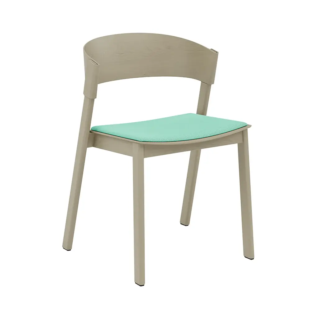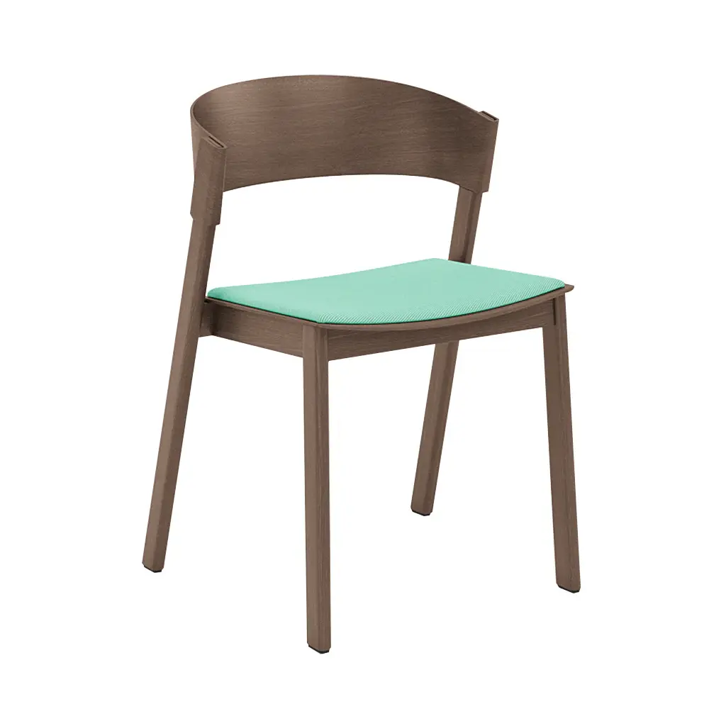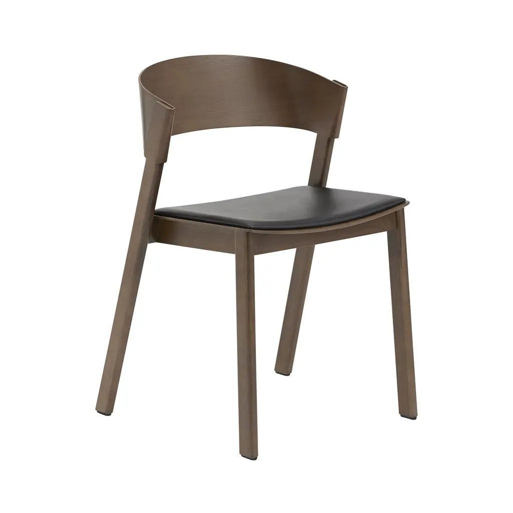 Elegant textile and leather upholstery selections serve to customize designer Thomas Bentsen's sleek rethink of the essential wooden side chair. With its signature curved backrest that folds around the back legs, Cover fits firmly in the Scandinavian tradition of outstanding wood craftsmanship. Finished in a choice of matte colors in water-based lacquer, the back and seat are fashioned in veneer with solid oak base and legs.