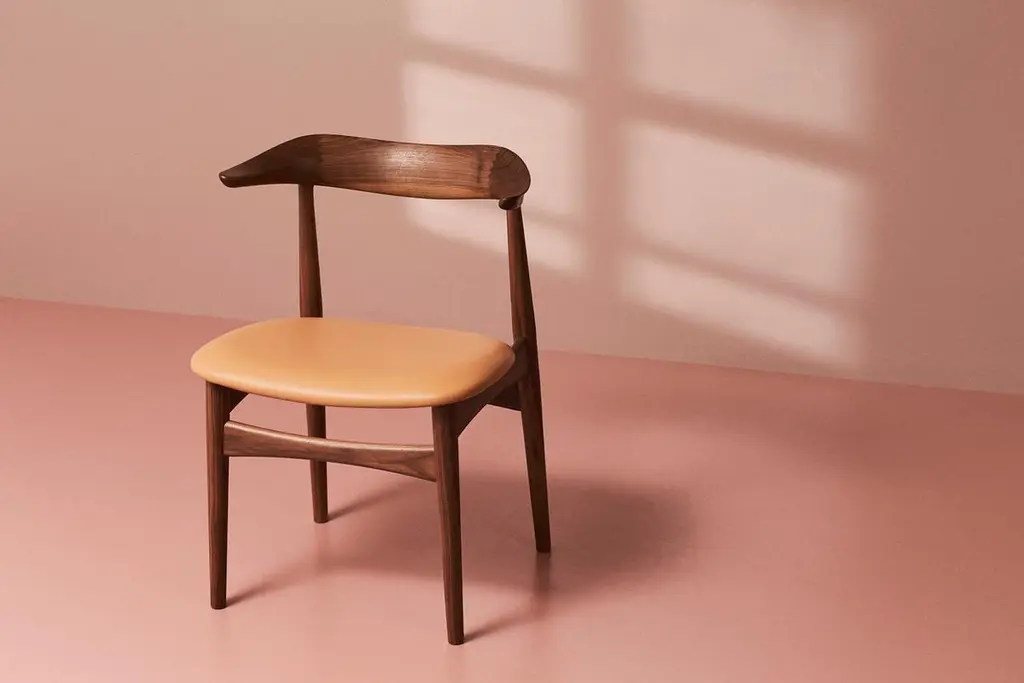 Cow Horn Chair Walnut Black Leather By Warm Nordic