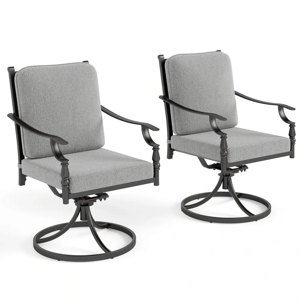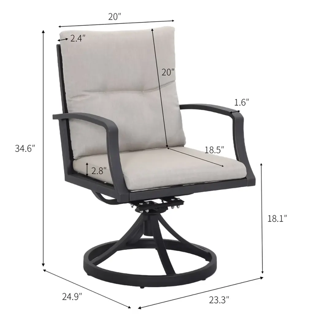Cowlown Aluminum Swivel Dining Chair, Single Seat With 1.97-inch Seat And Back Cushion, Painted Finish For Outdoor Use