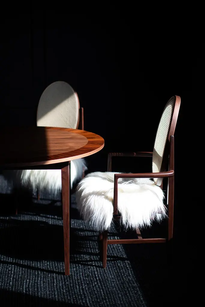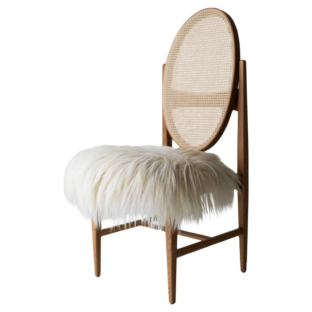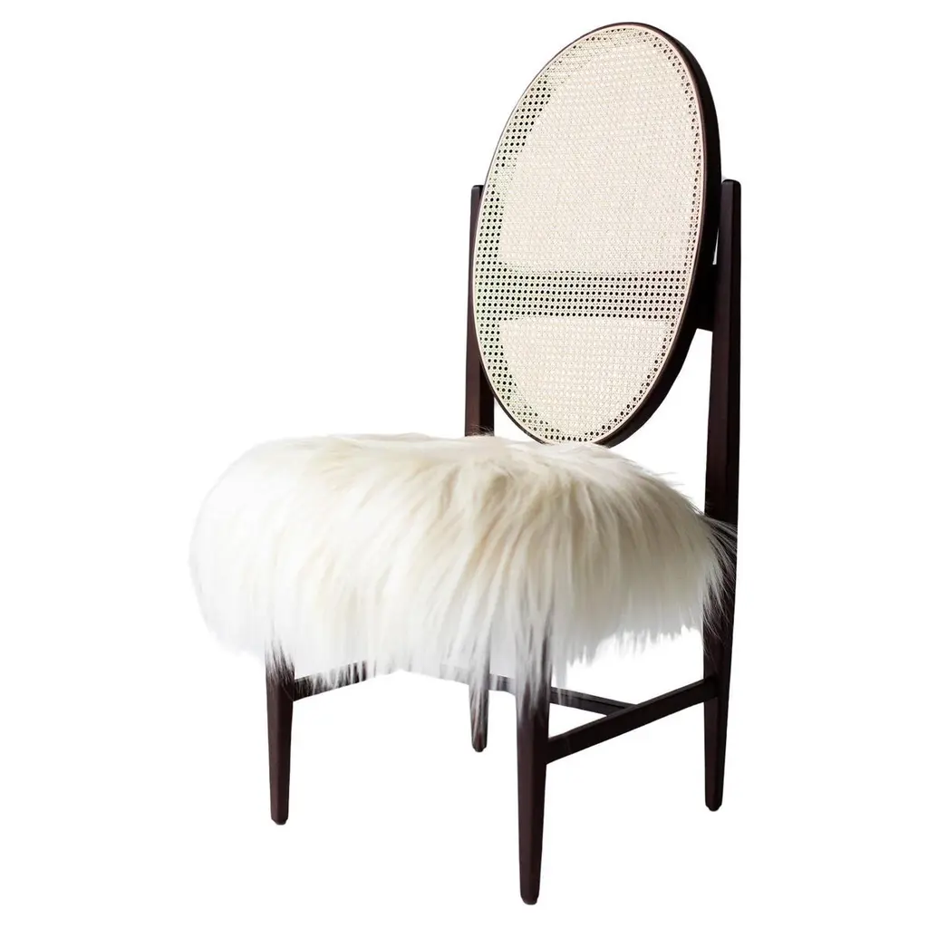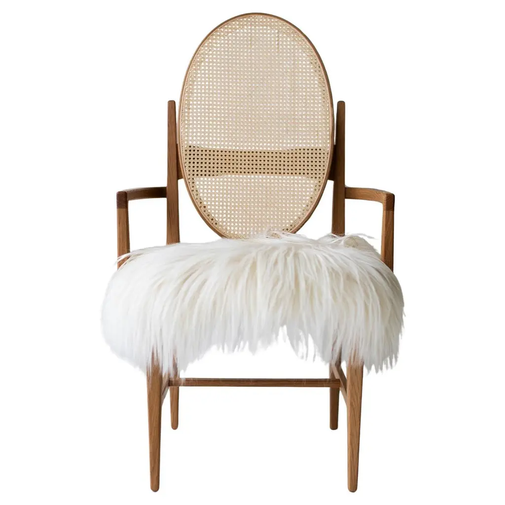 CraftAssocaites Dining Chairs, Baughman Mid Century Dining Chais, Walnut, FurThe Milo Baughman Oval Cane Back Walnut Arm Chair for Craft Associates® Furniture is expertly crafted. The chairs are shown here in solid walnut and sheepskin, but each is hand built and made to order so wood species and fabric can be customized. Craft Associates has a full fabric program available.Craft Associates® Furniture is proud each piece is made in the US. We strive to craft a product that will stand the test of time. We use the best materials and have the best craftsman in the business. We stand 100% behind our product.Designed by Milo Baughman, these dining arm chairs carry forward his legacy of clean lines, elegant forms, and functionality. It’s more than just a piece of furniture; we're proud to carry on Baughman’s enduring influence on modern design."Contemporary design at its timeless best." One of the most influential American furniture designers of the late 20th century, Milo Baughman, embodied contemporary design and adeptness in every creation. His work mainly revolved around residential furnishings. His Gallery 1 includes a variety of useful and simple contemporary pieces for the home. Drawing inspiration from fellow Californians Charles and Ray Eames, Baughman’s designs exuded a relaxed and breezy air, steering clear from ostentatious designs. His aesthetic simplicity was exceptionally profound, relying heavily on sturdy flat-bar chromed metal for seating and table frames, beautifully figured wood veneers and balanced geometric proportions. Designer: Milo BaughmanManufacturer: Craft Associates® Modern FurniturePeriod/Model: Mid Century ModernSpecs: Walnut dimensions H: 40.5"W: 23 "D: 21.5"SH: 18.25"pricingPricing to trade: YesSKU: CraftAssocaites Dining Chairs, Baughman Mid Century Dining Chais, Walnut, Fur