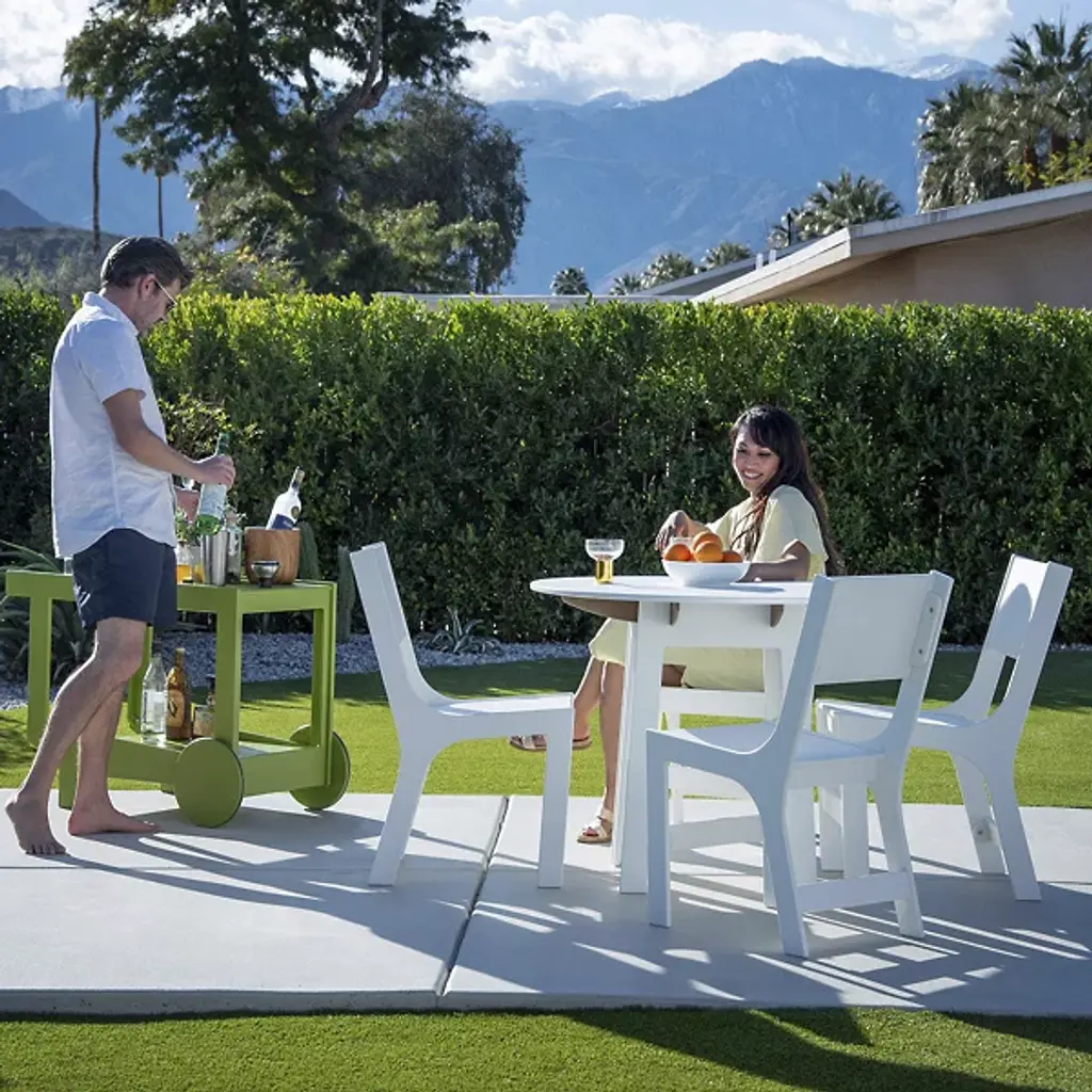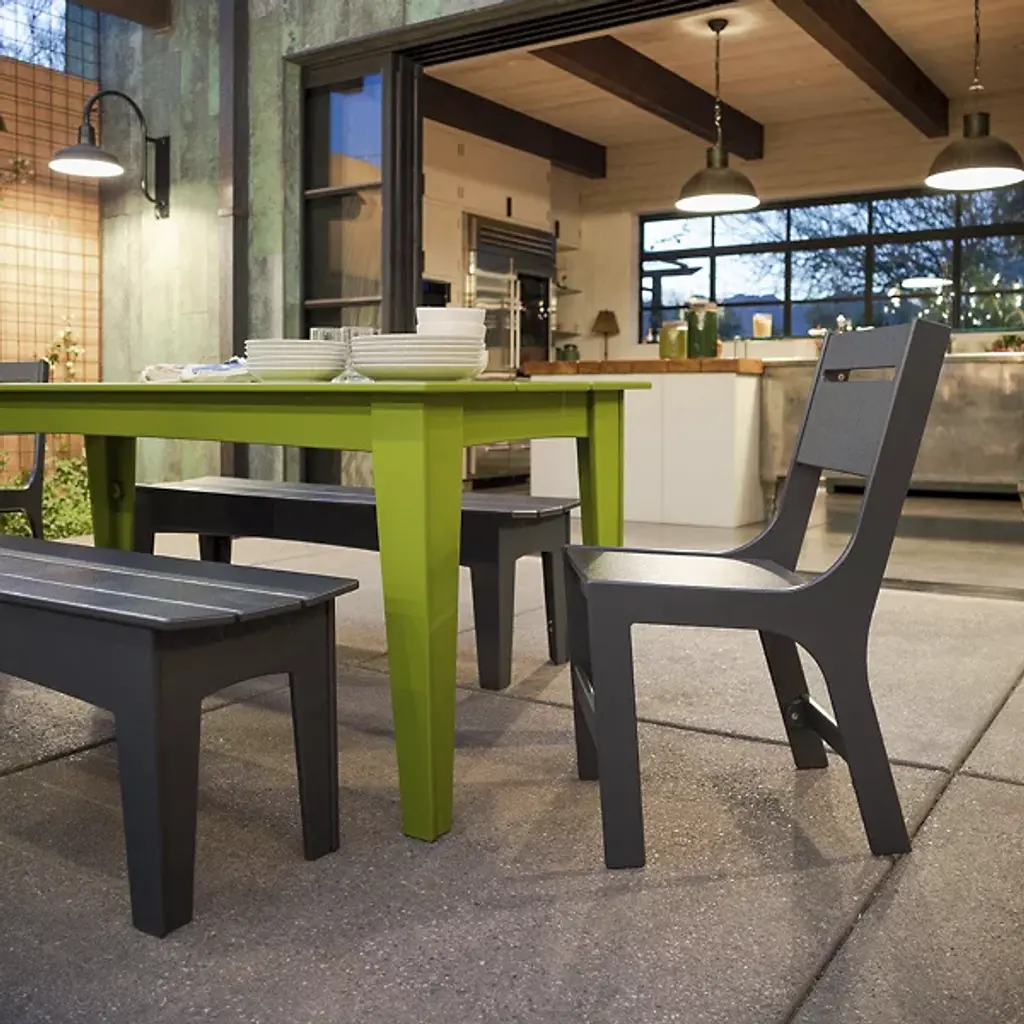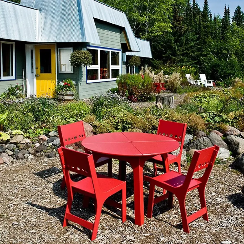 The Loll Designs Cricket Outdoor Dining Chair is designed for comfort and conversation. It is made out of recycled milk jugs and non-recycled HDPE, a durable and maintenance free material. Available in a variety of colors and with a solid back or with decorative Line or spotty Spiracle cutouts.