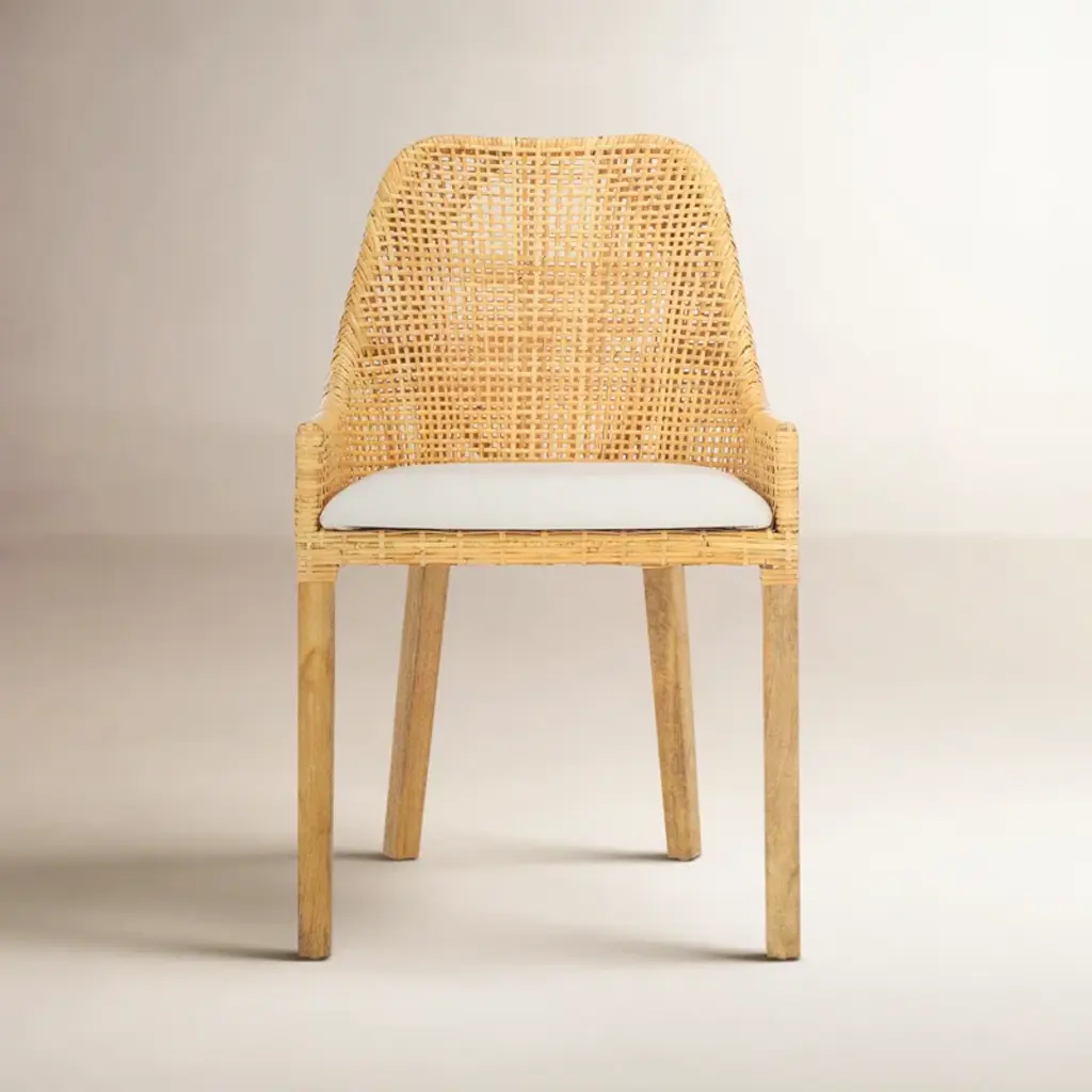 This stunning Cris Dining Chair was inspired by the work of master wood artisans in Japan. Crafted with natural toned wood and the inimitable beauty of natural cane, the graceful curves of its welcoming frame make it a contemporary heirloom.