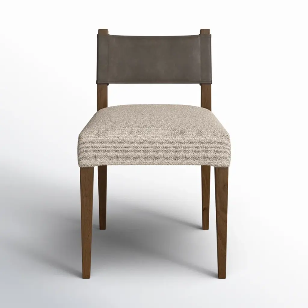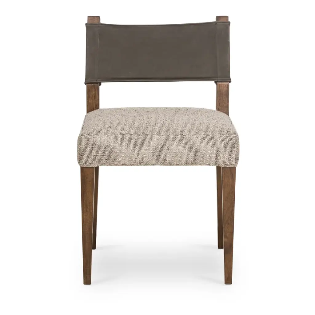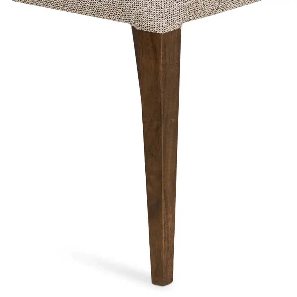 Embracing a primitive design with wide, slightly tapered legs and a distinctive wood connection through the frame. Sandy nettlewood and natural fabric pair for rustic charm and modern comfort.