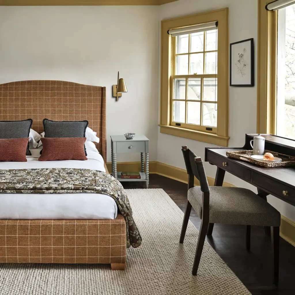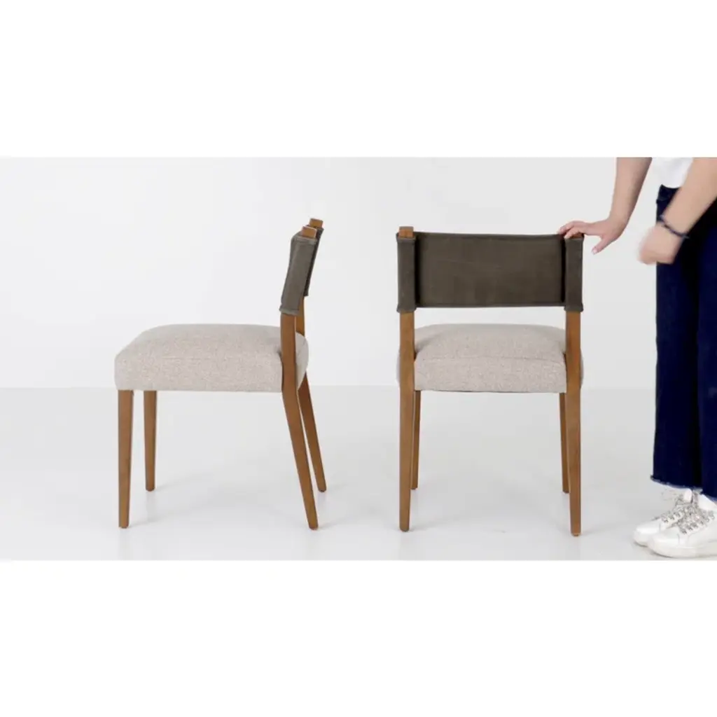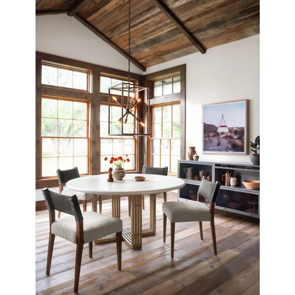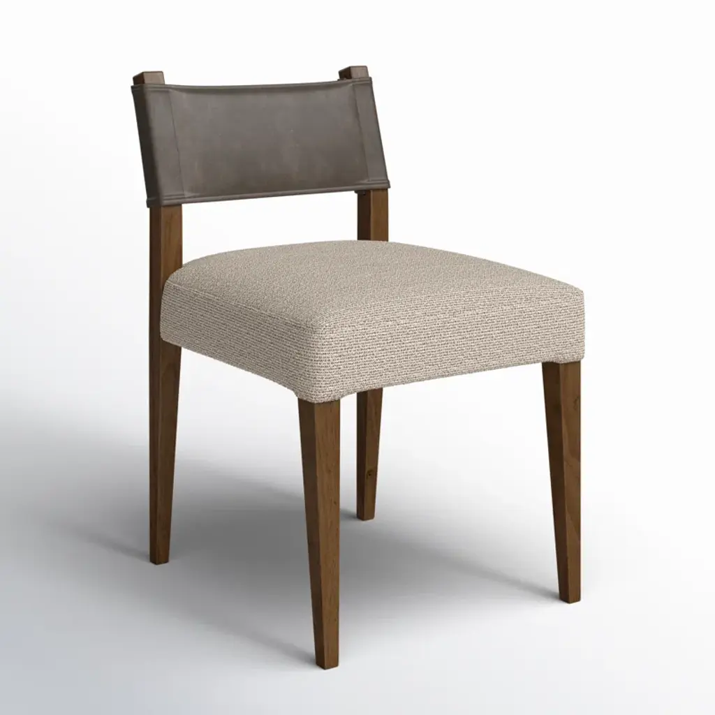 Embracing a primitive design with wide, slightly tapered legs and a distinctive wood connection through the frame. Sandy nettlewood and natural fabric pair for rustic charm and modern comfort.