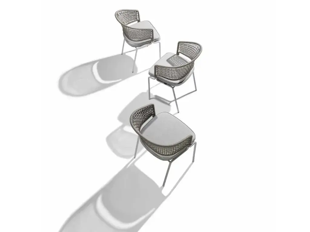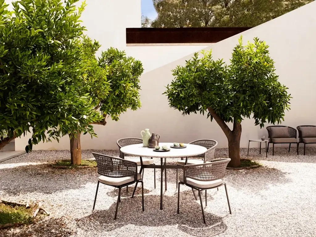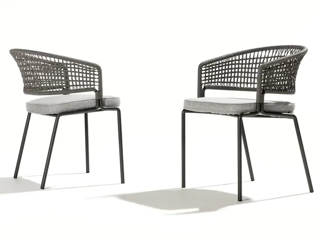 Italian designer Piergiorgio Cazzaniga does with the CTR collection what he is good at: making complex designs appear effortless. With a lightness of touch the open weave of the backrest appears to float unsuspended around the seat. Italian designer Piergiorgio Cazzaniga does with CTR what he is good at: making complex designs appear effortless. The collection is characterised by a tube in powdercoated stainless steel that follows the outline of the chair in one continuous line. The curves of the tube are bent in a corner of 90° and keep a round form which requires great mastery. With a lightness of touch the open weave of the backrest appears to float unsuspended around the seat. The weave is made of weather-resistant Tricord and gives extra support to the back. The seat is upholstered with a water-repellent cushion which can be easily removed. Materials: The frame consists of stainless steel tubular sections, powdercoated with an ultra-durable coating. The back is woven from Tricord, a weather-resistant and environmentally friendly fibre based on polyolefin. Colours: White frame with linen weave Wengé frame with linen weaveWengé frame with wengé weave