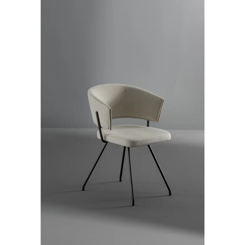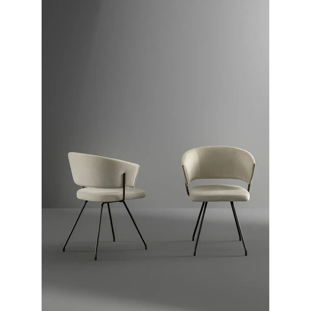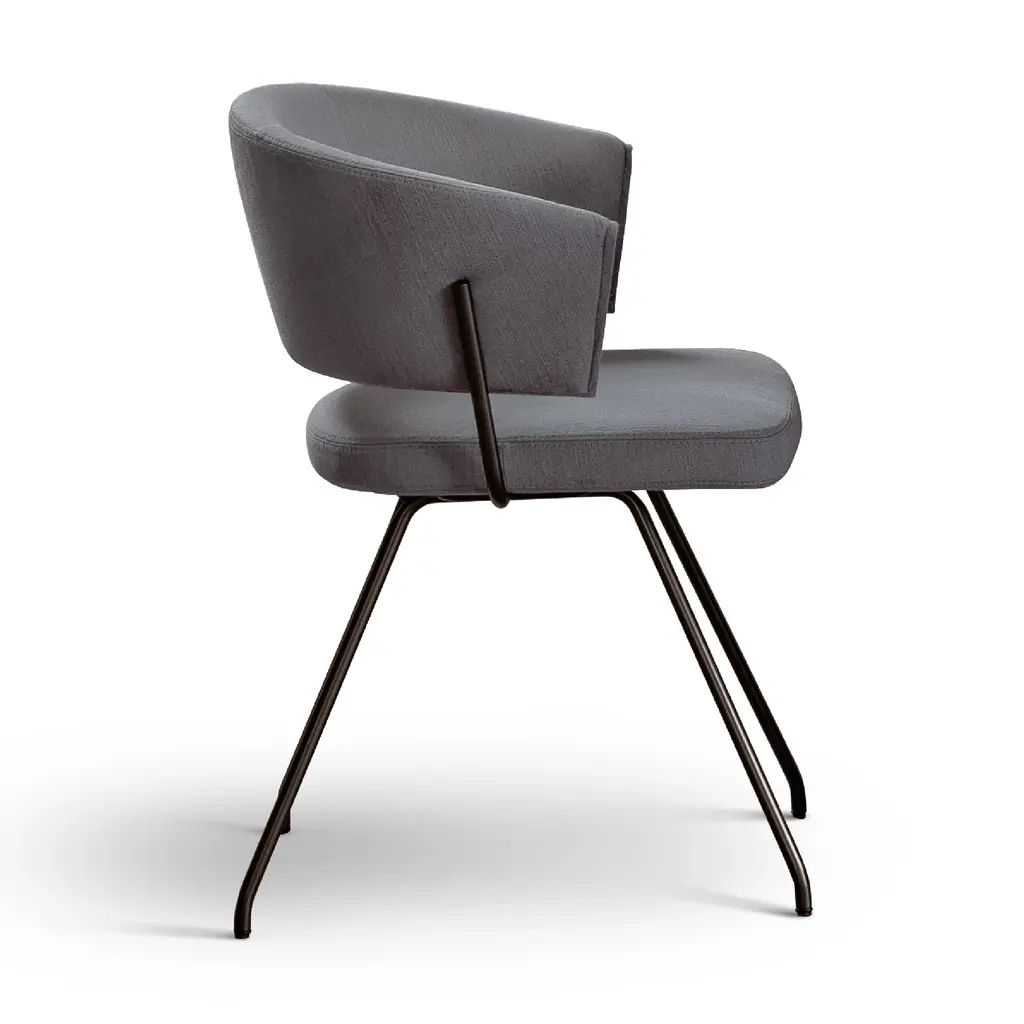 The assembly of curved shapes and simple tubular metal elements creates a balanced shape, which is ideal both in residential settings and in smart contract environments such as offices, waiting rooms and hotel lobbies. The main characteristic of Bahia is the curved backrest that extends forward in a single line, allowing the arms to rest freely while enveloping the user's back for maximum comfort. Comfortable from the first glance, thanks to its organic shapes, the collection is also characterized by slender legs in metal, flexing outwardly: and the frame, thin but rigorous, that highlights through contrast the sinuousness of the backrest and seat. The Bahia dining chair is upholstered in leather, eco-leather or fabric.
