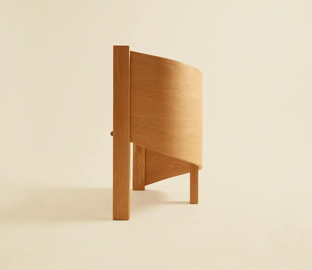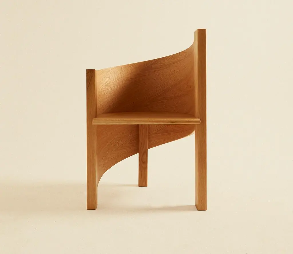 The simplicity found in Vagari's broad gestural line is a deliberate departure — a temporary reaction to the intricate nature of the designer's previous works, as well as an exploration inspired by the Latin word "vagor" and its connection to wandering. Through the elegant use of this sweeping line, the chair manifests a tranquil and grounding presence. The deliberate simplicity of the chair serves as a visual and emotional anchor, evoking a sense of calm and stability. Custom woods are available upon request.