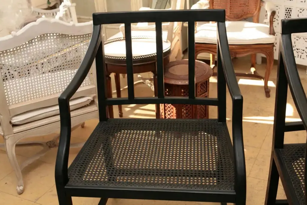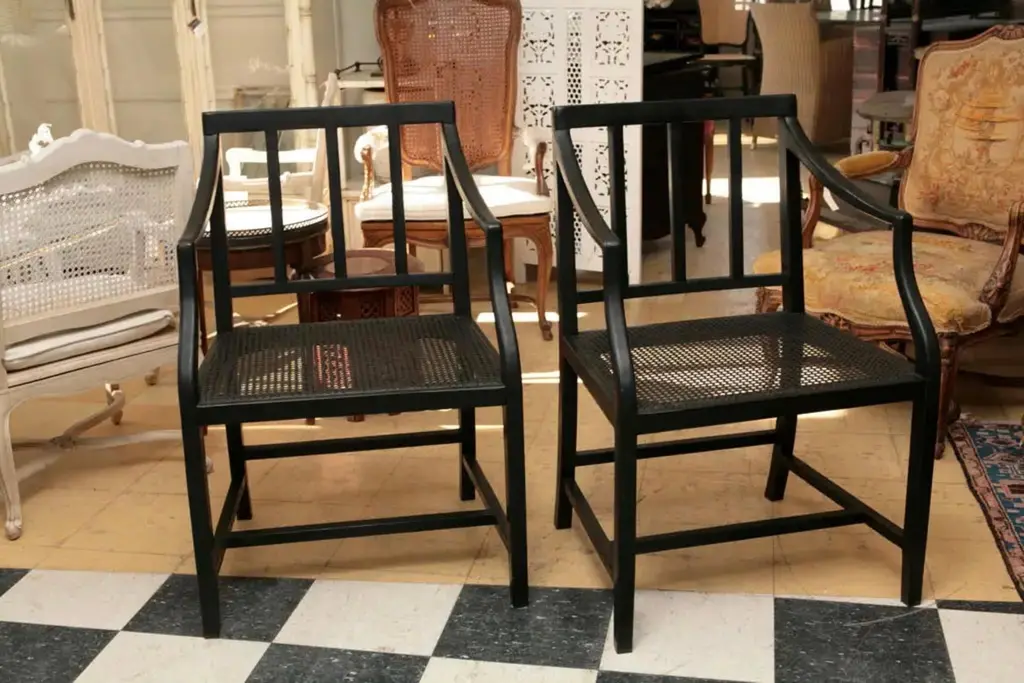 Made to order, the chairs were originally made by us for the movie "It's Complicated". We have now added side chairs to compliment the arm chairs. Now seats can be also be caned or solid. These are all individually handcrafted and so there is a 12 to 16 week lead time from date of order.Please note, seat cushions are NOT included. Additional charge for fabricating seat cushions. Ask us for a quote.We can fabricate custom dining table as shown in the 3 detailed photos.Use as dining chairs, office chair/ desk chair / conference room chairs -- just about any situation where a beautiful Classic chair is needed.Dining chairs, arm chairs, side chair, bar or counter stools.Suitable in modern, traditional, period, country, Mid-Century Modern or contemporary, Minimalist decor.Measures: Arm Height = 26".We can vary the dimensions somewhat. Please check with us for all possibilities.