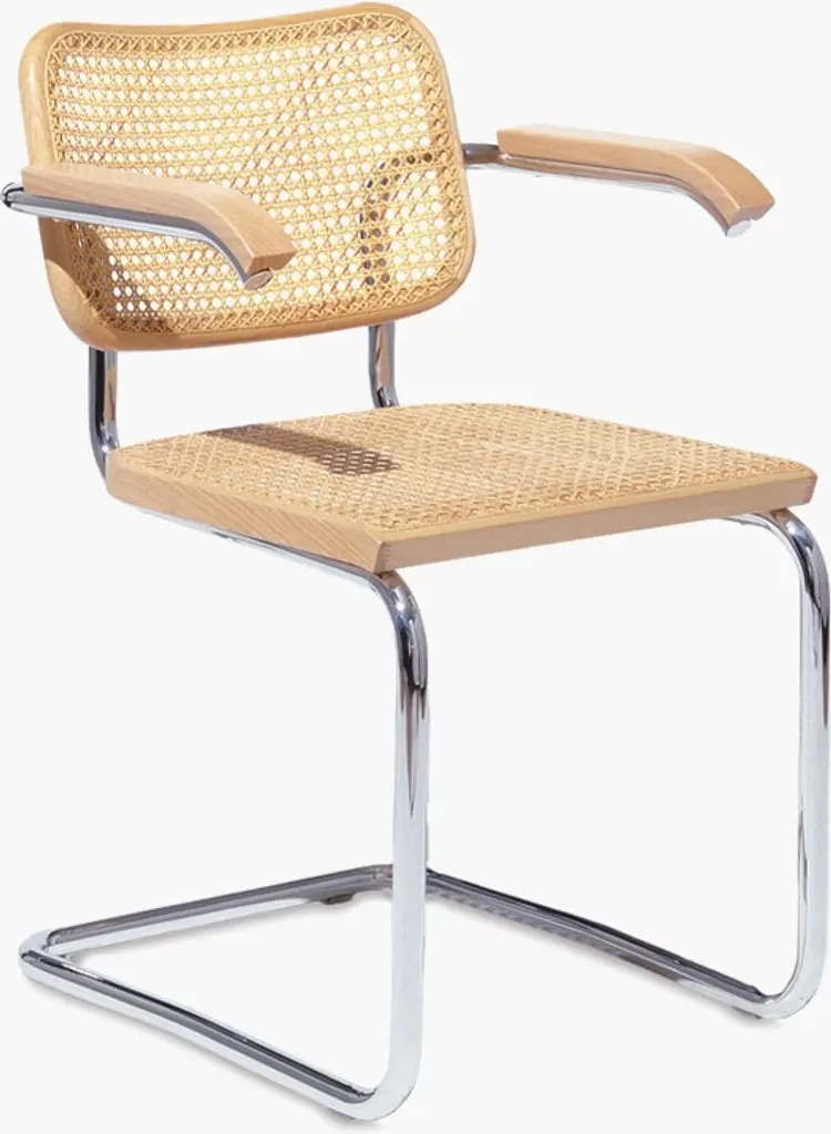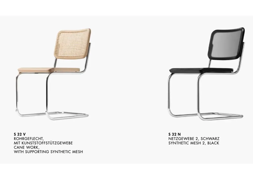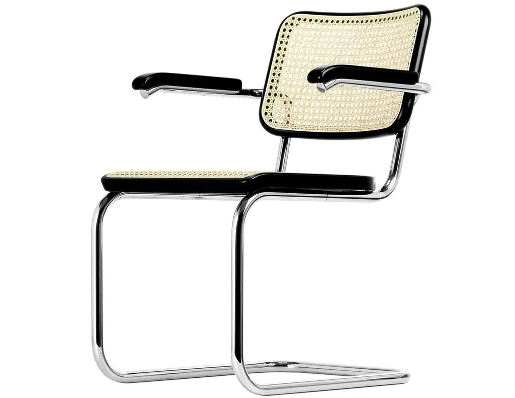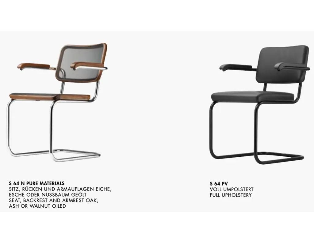 Among the tubular steel furniture models, the cantilever chair S 64 is especially versatile. It is at home in various design worlds and fits in with uncompromisingly modern interior design as well as in a diversified mix that gives space to different epochs and styles. The cantilever chair S 32 and the version S 64 with armrests are the most famous tubular steel classics. The appealing combination of new and old contribute to their popularity: the tradition in the production of bentwood furniture with characteristic Vienna wickerwork, in contrast with the revolutionary use of tubular steel. Seat and backrest made of bent solid wood with wickerwork represent tradition, and the frame represents the present and future. With their versatility, they became bestselling cantilever chairs and still are today. Marcel Breuer designed the S 32 and S 64 during his time in Berlin in 1928. Gebreuder T has been producing both models since 1930. Due to their aesthetic reduction and clarity combined with the airy wickerwork, the classics fit into the most diverse environments, from conference rooms and waiting areas to restaurants and private homes.Manufacturer: Gebruder T.