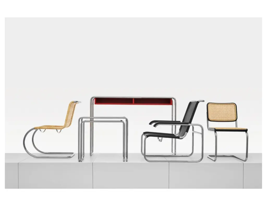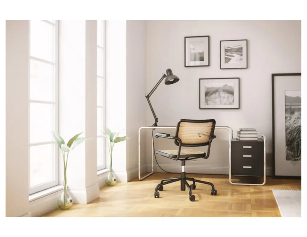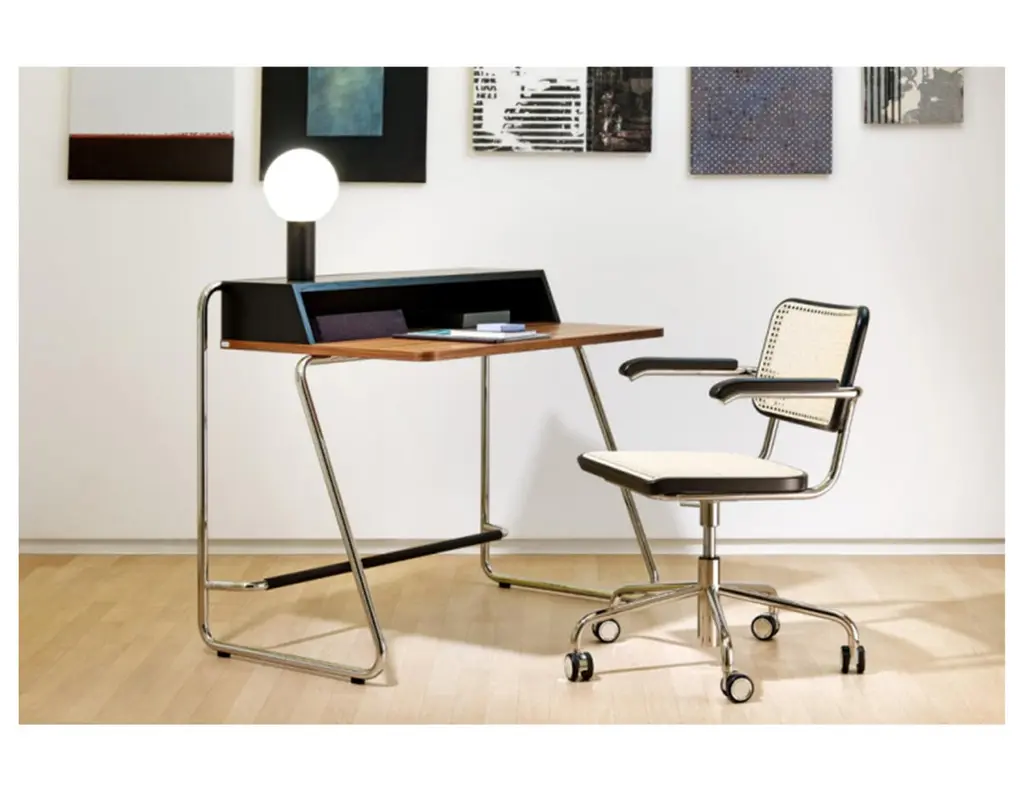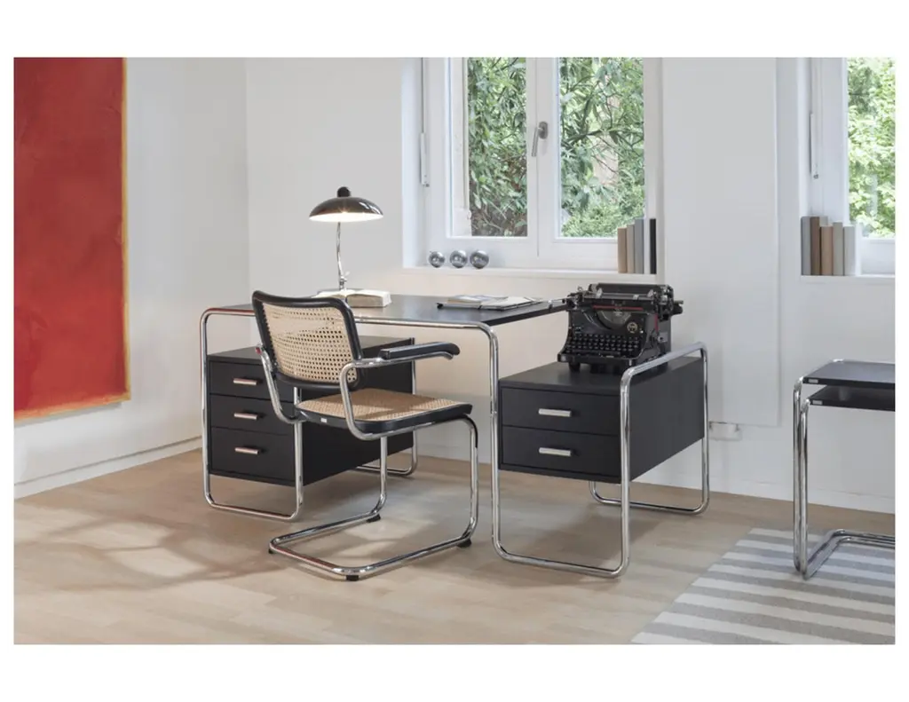 Among the tubular steel furniture models, the cantilever chair S 64 is especially versatile. It is at home in various design worlds and fits in with uncompromisingly modern interior design as well as in a diversified mix that gives space to different epochs and styles. The cantilever chair S 32 and the version S 64 with armrests are the most famous tubular steel classics. The appealing combination of new and old contribute to their popularity: the tradition in the production of bentwood furniture with characteristic Vienna wickerwork, in contrast with the revolutionary use of tubular steel. Seat and backrest made of bent solid wood with wickerwork represent tradition, and the frame represents the present and future. With their versatility, they became bestselling cantilever chairs and still are today. Marcel Breuer designed the S 32 and S 64 during his time in Berlin in 1928. Gebreuder T has been producing both models since 1930. Due to their aesthetic reduction and clarity combined with the airy wickerwork, the classics fit into the most diverse environments, from conference rooms and waiting areas to restaurants and private homes.Manufacturer: Gebruder T.
