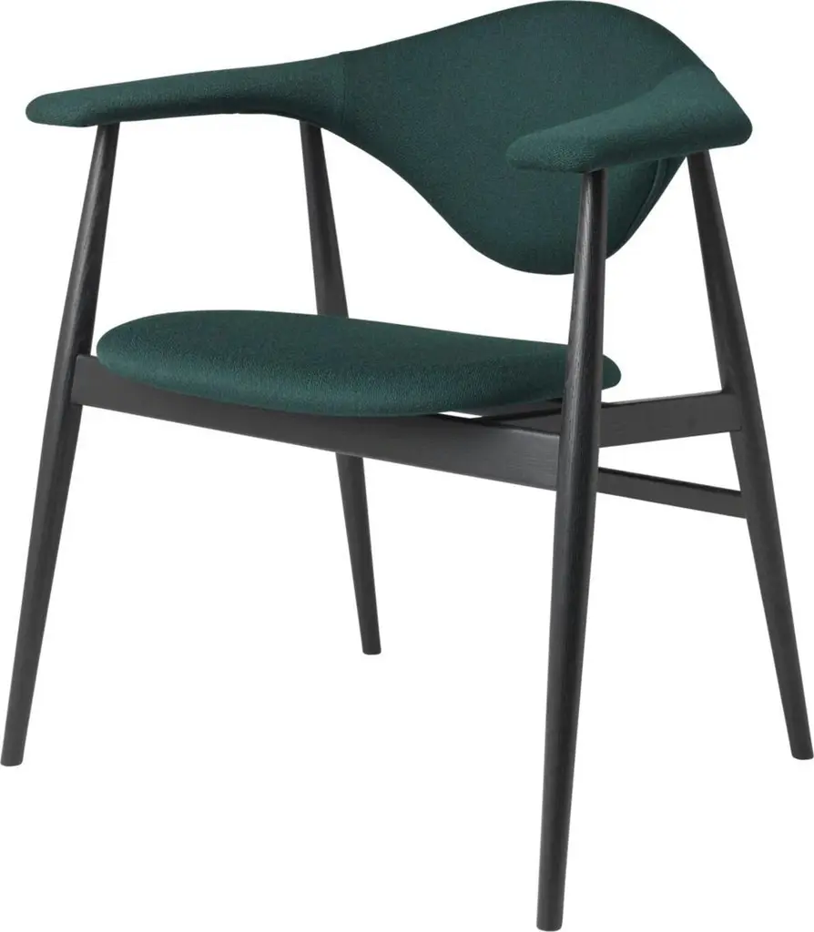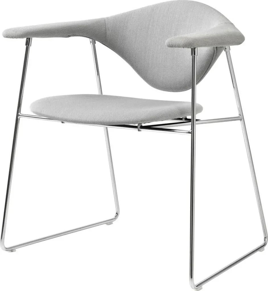 Designed for the fine dining restaurant Copenhague at Maison du Danemark in Paris, the four-legged Masculo Dining in metal marry the idea of Danish elegance and simplicity with Italian refinement and playfulness. The backrest of Masculo is almost overly large and appears to float in the air which is challenging to the senses. This is supported by the slender metal legs that make the whole dining chair almost sculptural and exciting to the eye. The upholstered chair ensures a high level of comfort, while its clean metal legs and sophisticated form lend the chair a graceful presence. The metal base gives the Masculo dining chair a more domestic expression that is perfectly suited for hospitality projects as well as the private home.e.Product net weight kg: 9,6Gross weight kg: 12Gross height meter: 0,76Gross length meter: 0,76Gross depth meter: 0,58Seating dimensions D x W x H: 57 x 67 x 74 cmSeat height: 45 cmSeat width: 47 cmSeat depth: 42 cmBack height: 29 cmArmrest height: 68 cmArmrest distance between: 44 cmBase leg thickness: ø2,5-3,5 cmFrame width: 67 cmFrame depth: 55 cmProduct must be configured: falseUpholstery type: fully upholstered.