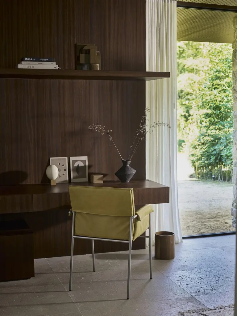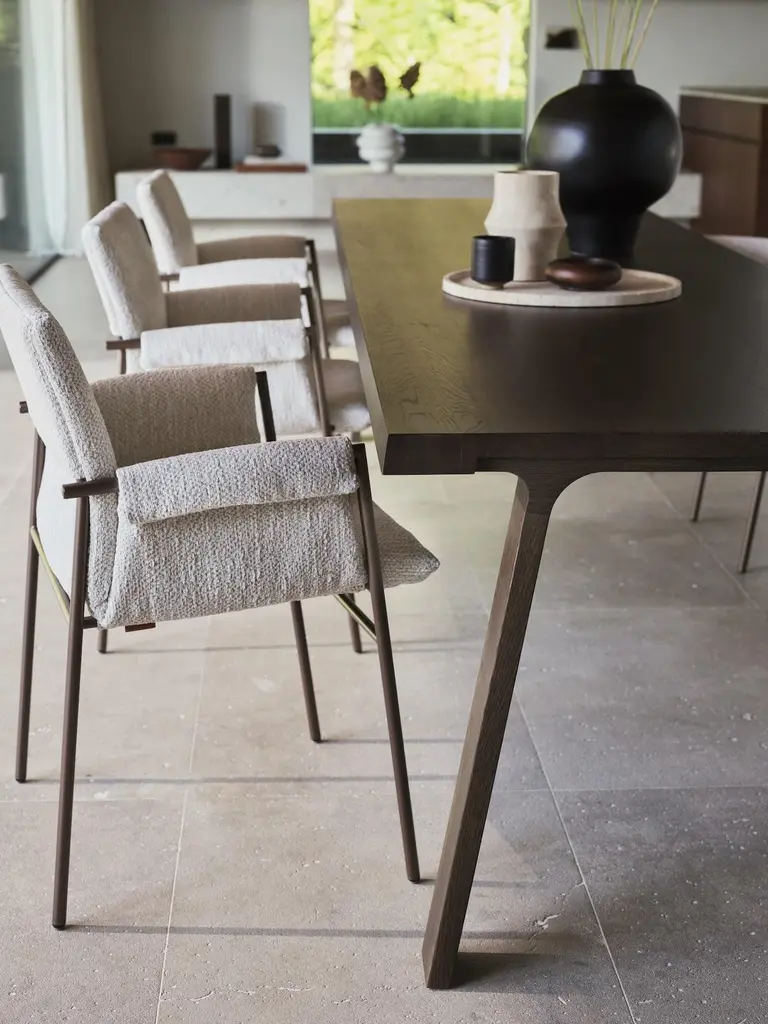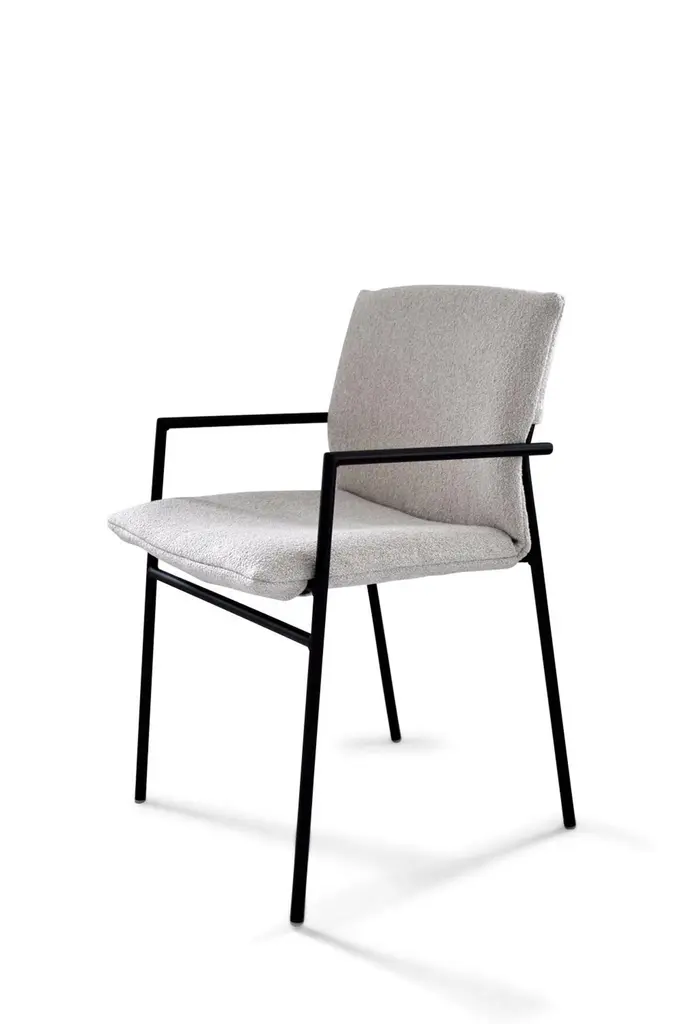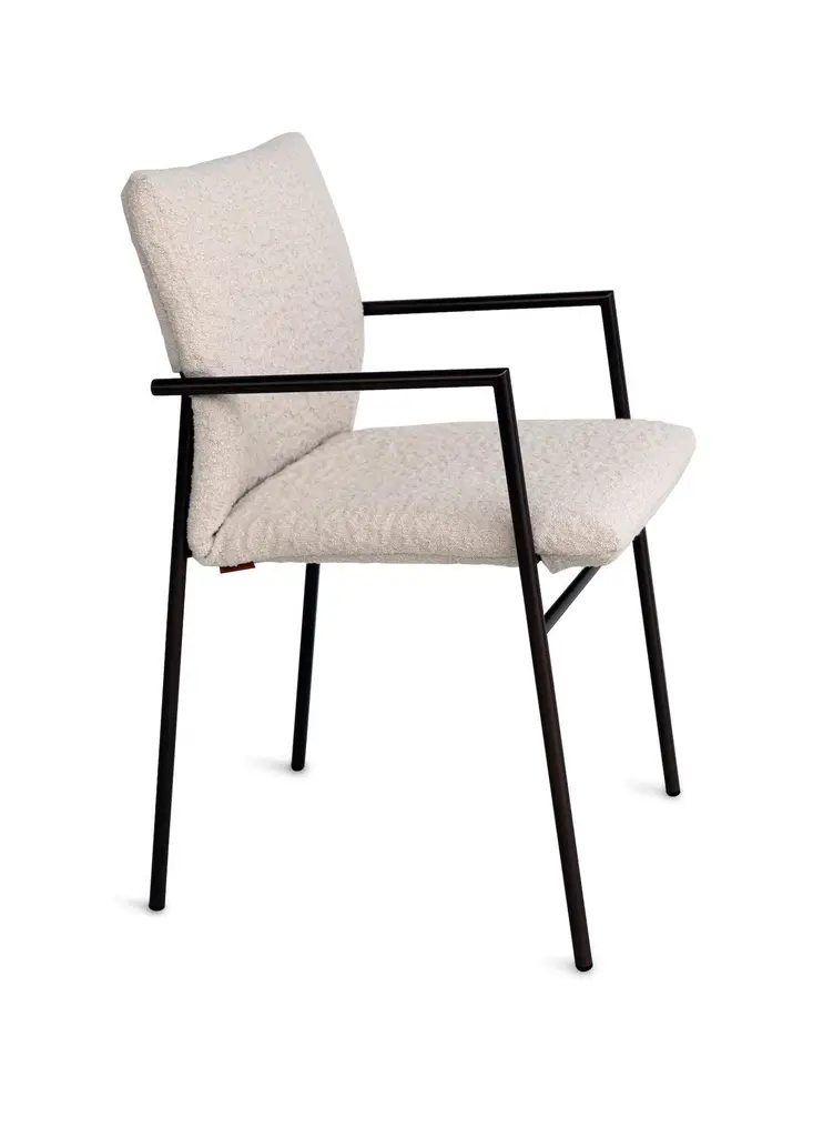 Is it a dining room chair, a project or conference chair?With his flexible character, Yves is it all. Gerard van denBerg devised a slender steel construction as the basis for aunique chair with many faces.DescriptionMetal frame: Matt black powdercoated Bronze-look Silver greySynthetic feet with felt are included separately.Yves is available with or without upholstered armrests.The Yves S is also available. This chair is stackable.