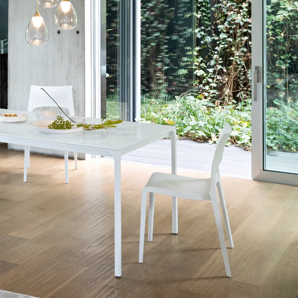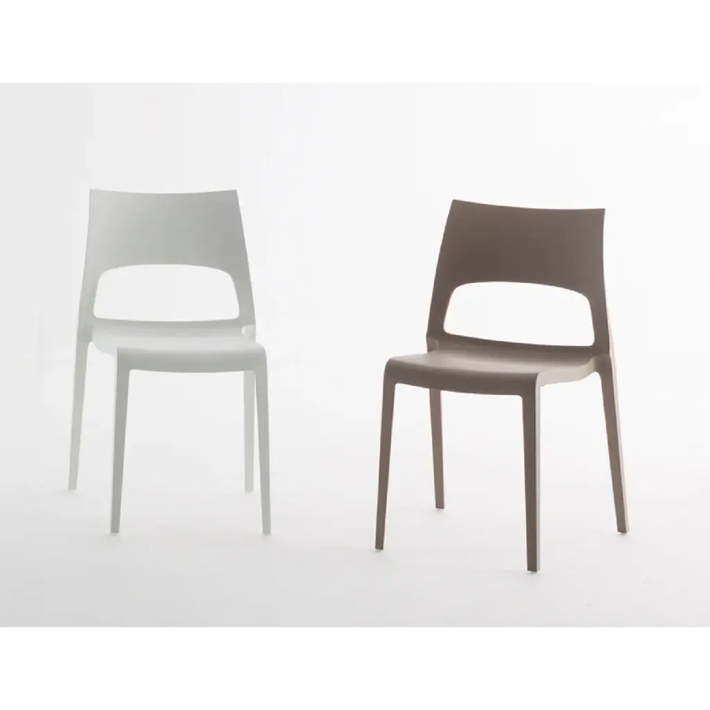 With a sobriety of use and image, emphasized by the design of the backrest, which is marked by its single opening, Idole is a lightweight stackable chair, with monocoque body in resistant plastic material. Available in five elegant colors, it can fit into every environment with style. The Idole designer plastic chair is a robust and comfortable object for everyday use, thanks also to the use of innovative materials and production techniques and its extreme ease of handling. The curvature of the backrest is emphasized by the flared line of the back legs, for an essential but dynamic result: a look that makes it versatile in use, suitable for public or private spaces, perfect for the dining room, the bar area but also for offices or meeting rooms.