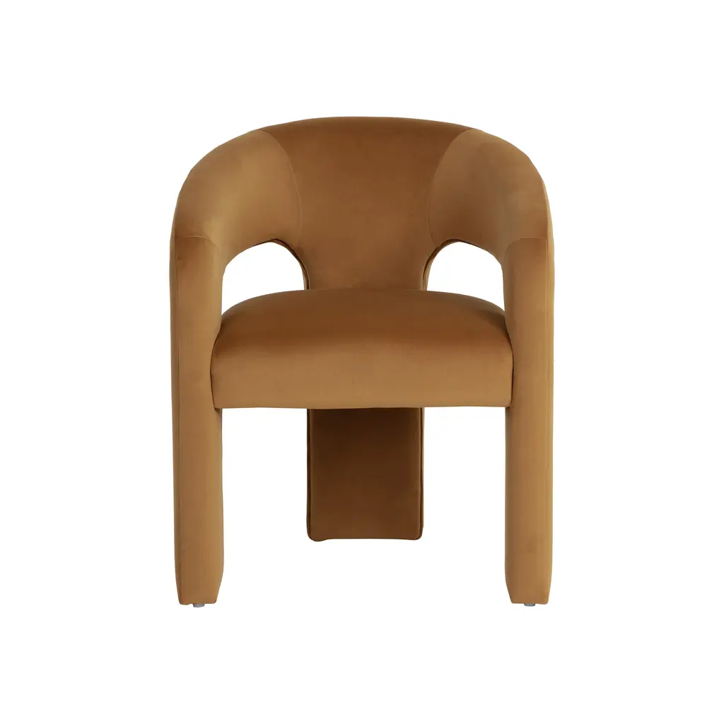 Immerse yourself in the understated elegance of the Kara Dining Chair. It is a masterpiece that transcends the ordinary. This exquisite dining chair is adorned in captivating upholstery, boasting a light neutral hue that effortlessly elevates any dining room or kitchen ambiance. The Bilma Sand fabric, woven in a luxurious Boucle texture, not only exudes sophistication but also promises a tactile experience like no other.Crafted for both comfort and style, the Kara Dining Chair features seamlessly integrated armrests, providing a cozy retreat as you enjoy your meals. The distinctive design of the backrest, accentuated by a unique central hole, adds a touch of modern flair, making this chair a statement piece in any space. The four sturdy legs, all gracefully enveloped in the same Bilma Sand fabric, create a harmonious visual unity, completing the chair’s overall aesthetic charm.Indulge in a dining experience that goes beyond the ordinary with the Kara, a fusion of impeccable craftsmanship, alluring neutral tones, and modern design, this chair invites you to dine in unparalleled style and comfort.