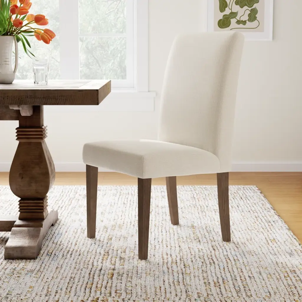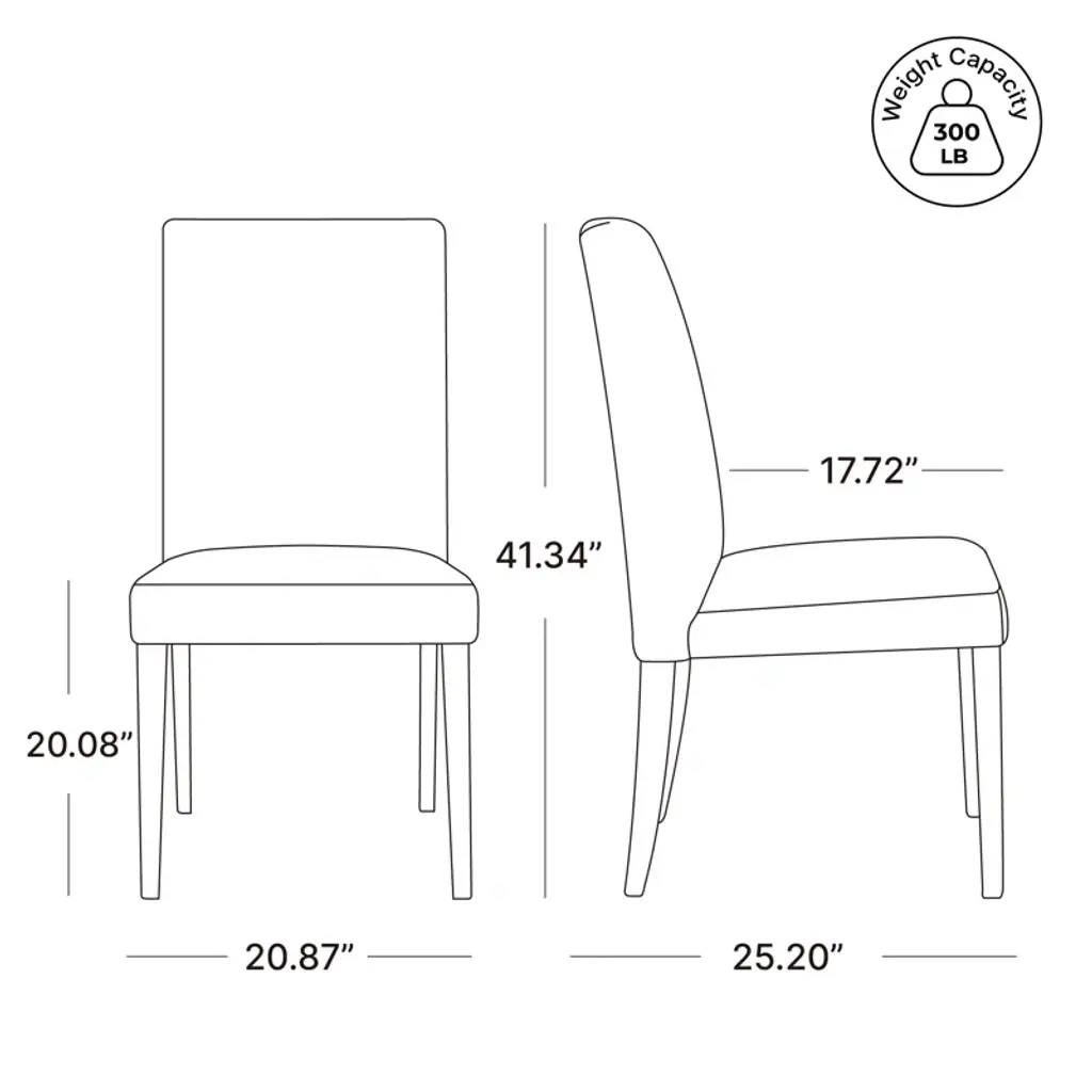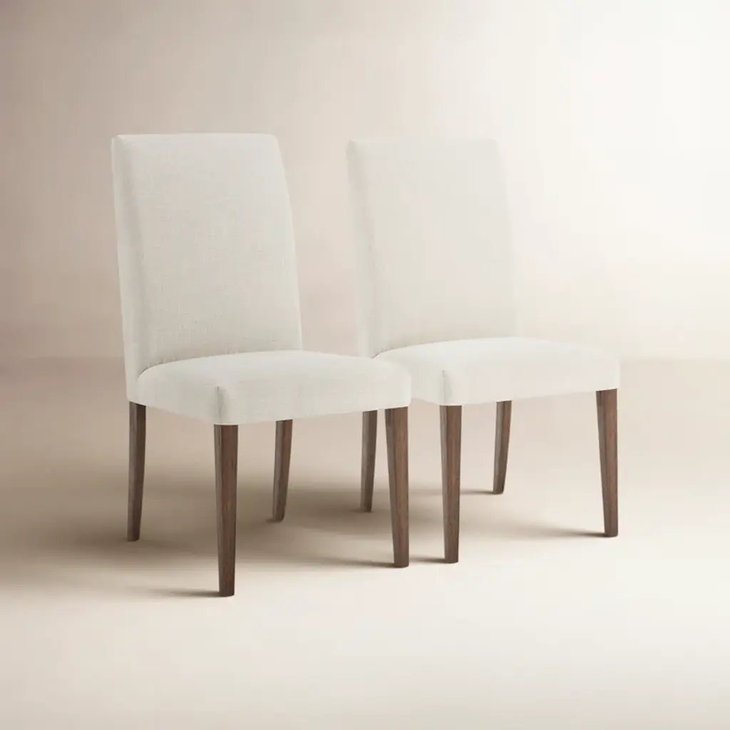 The Cyrus Upholstered Dining Chair Set is a versatile and classic option for curating a sophisticated dining room. With its simple lines, the parsons chair is timeless and elegant, blending seamlessly into various decor styles. Cozy, high-density foam fills the spacious and inviting seat, encouraging you to linger over a coffee or engage in conversation. The supportive back ensures comfort as you dine, converse or work. Crafted of kiln-dried wood, a preferred choice for furniture as it prevents warping or cracking, the frame and legs offer long-lasting durability. Enjoyable and built to last, these chairs are perfect for everyday use. Whether in the dining room, kitchen, or home office, this set of 2 side chairs brings refined style and comfort to meet your seating needs.