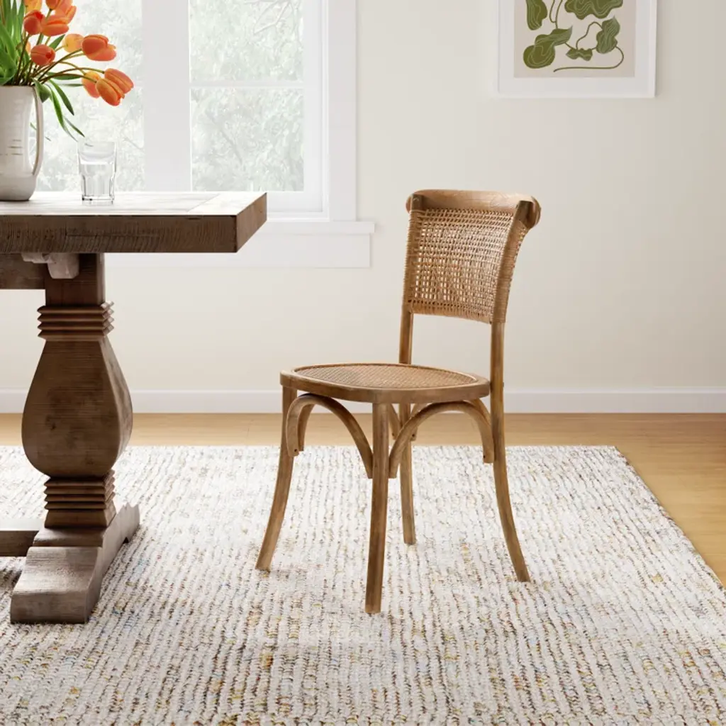 Bring a breezy, southern traditional style to your indoor dining area with this pair of dining side chairs. Framed with solid elm wood, each chair has a woven rattan seat and back that adds texture and an airy feel. The neutral finish easily blends in with any color palette, and these chairs work well with both traditional and coastal farmhouse decors. Why not pull them up to your dining table or add extra seating for loved ones in your dining room?
