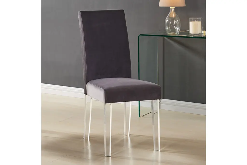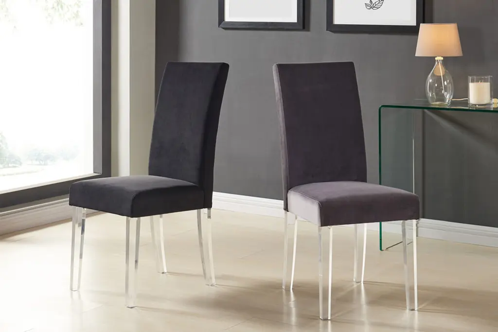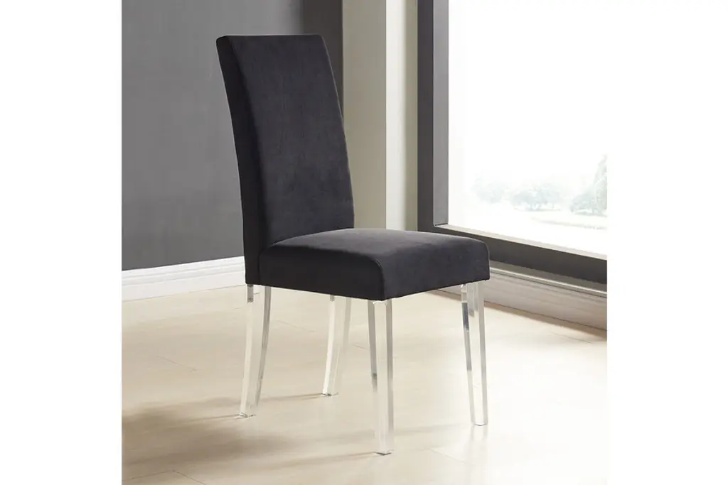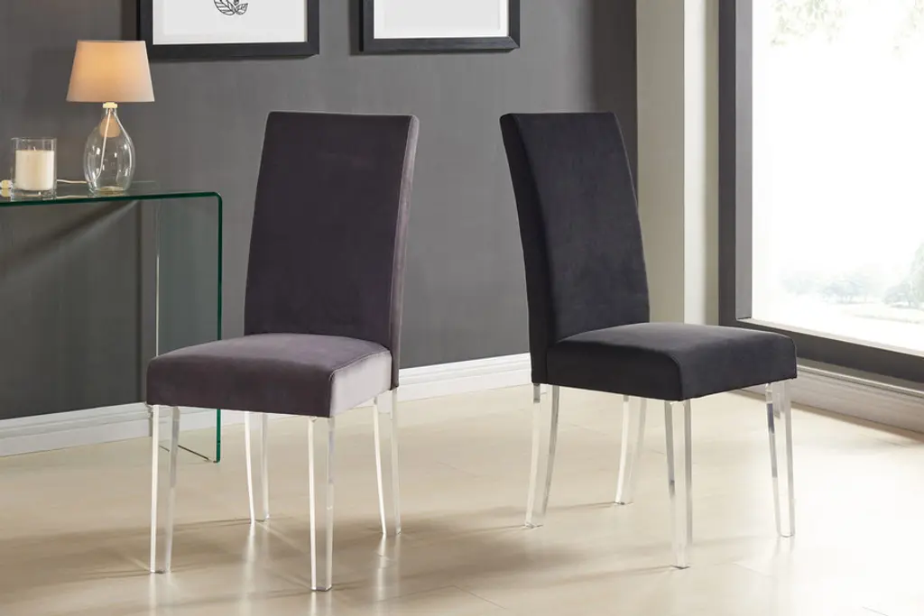 This svelte Dalia dining chair comes from Armen Living. With a lean and long look, this dining chairs completely upholstered in beautiful and luxurious velvet. The legs are made of clear acrylic so that you can enhance your homes contemporary dining room and dcor.