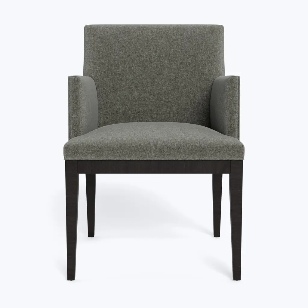 Exclusively online at ABC Carpet & Home, the Daphne Arm Chair is the perfect combination of comfort and style, bringing a refined look to your dining room. With its elegantly curved arms and comfortable seat, this chair offers an inviting place for your family and guests to gather around the dining table. Handcrafted with a sustainably sourced Goodwood frame, the Daphne Arm Chair reflects eco-friendly craftsmanship, while its durable construction ensures long-lasting beauty. This armchair features plush padding in both the seat and back, using dense foam made from partially plant-based materials, and padded with poly fibers for superior comfort. Whether placed at the head of your dining table or mixed with other seating options, the Daphne Arm Chair creates an elegant and cohesive look for your dining space. With over 80 customizable fabric options, including rich velvets, performance textiles, and refined linens, you can tailor the Daphne Arm Chair to complement any dining table or room aesthetic. Handcrafted to order and delivered within 8-10 weeks, this chair offers both comfort and style for a variety of interiors. Enhance your dining experience with the luxurious design and craftsmanship of the Daphne Arm Chair, perfectly suited to contemporary or traditional homes alike.