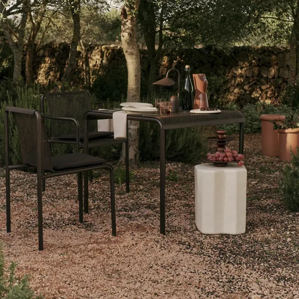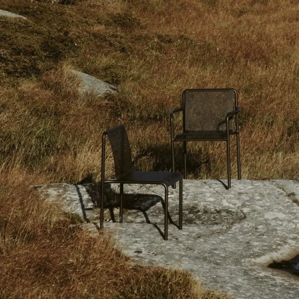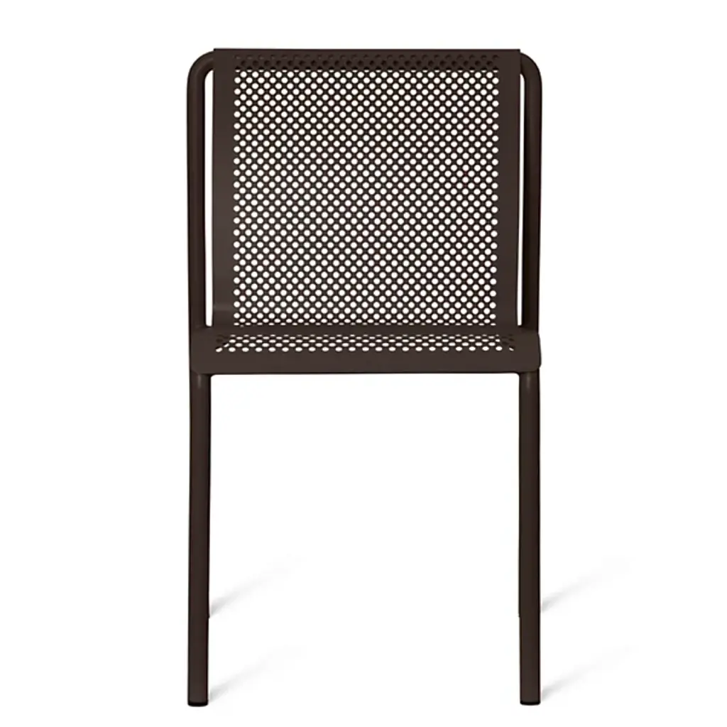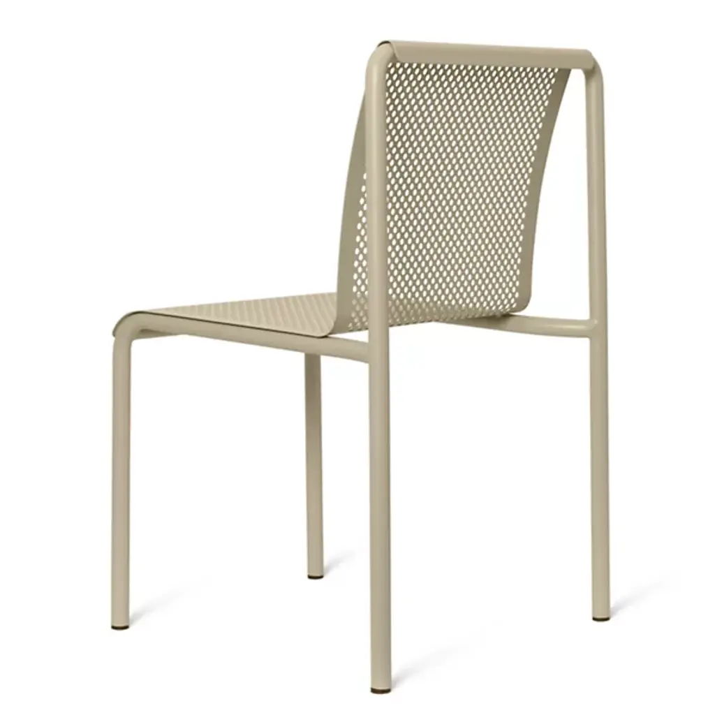 The Dapple Outdoor Dining Chair from Ferm Living channels contemporary simplicity and Scandinavian minimalism through durable materials and thoughtful details. Its design takes cues from nature, of sunlight filtering through a canopy and casting distinctive shadows. The perforated seat and back encourage airflow while preventing moisture from pooling, and the electro-galvanized steel creates a resilient finish that withstands outdoor conditions. Four slim, strong legs support the seat, creating a piece that can be dressed down for patio gatherings or dressed up for garden dining spaces.