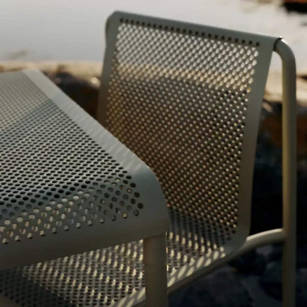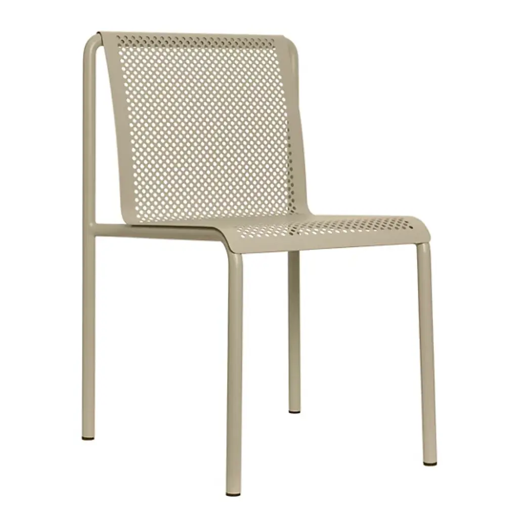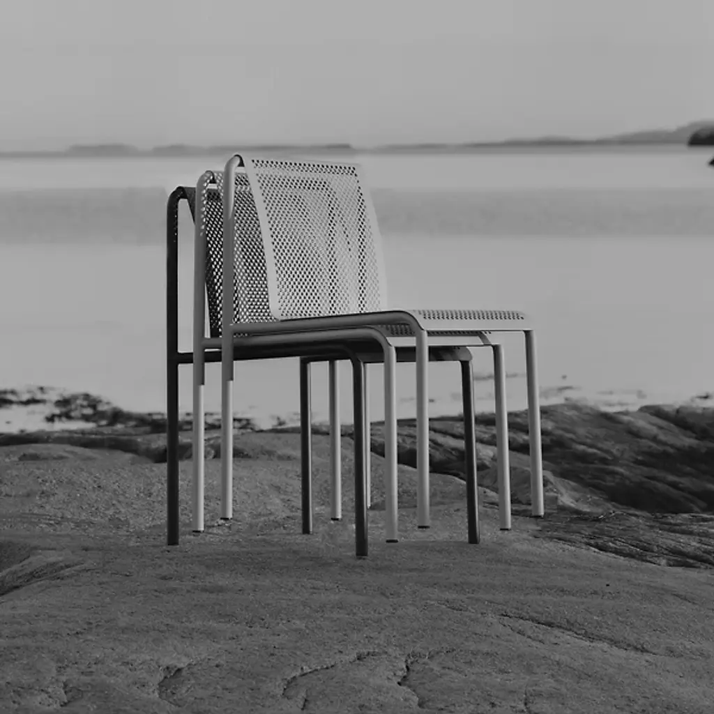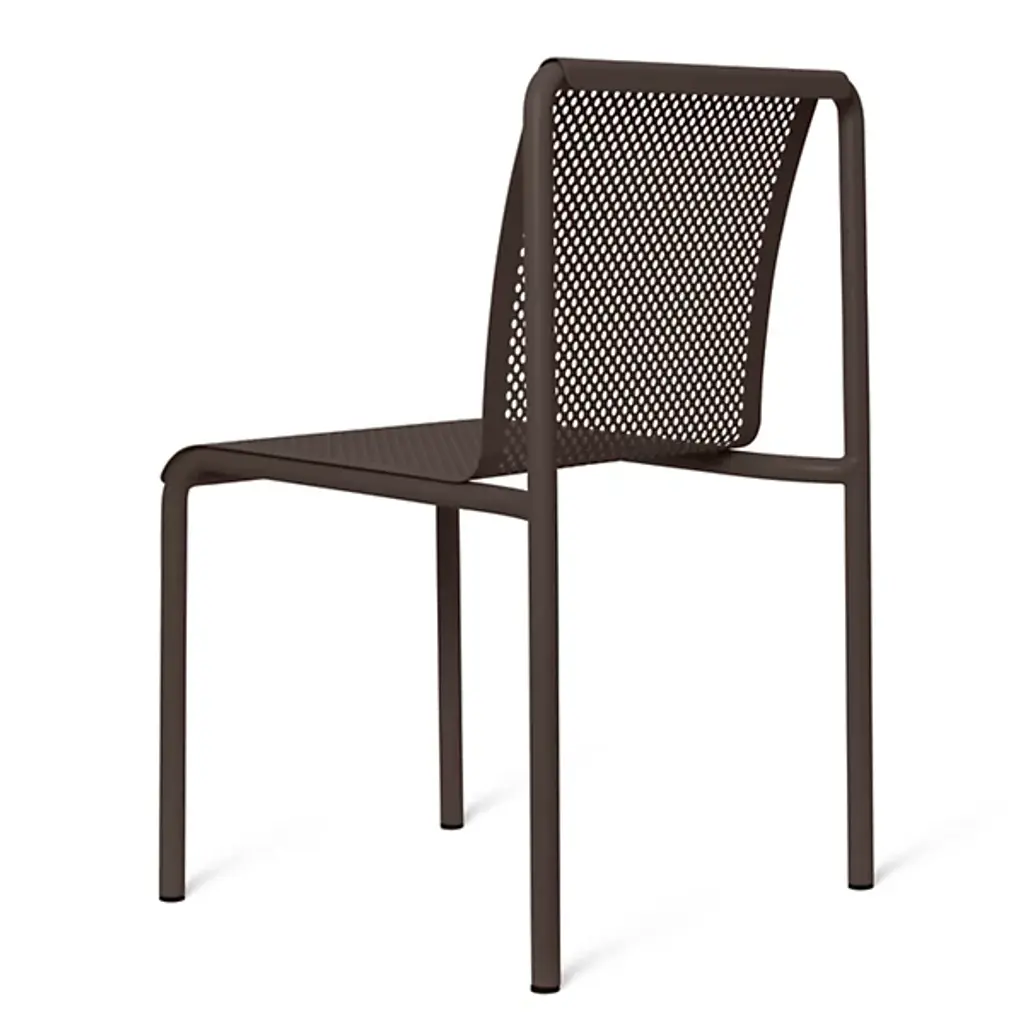 The Dapple Outdoor Dining Chair from Ferm Living channels contemporary simplicity and Scandinavian minimalism through durable materials and thoughtful details. Its design takes cues from nature, of sunlight filtering through a canopy and casting distinctive shadows. The perforated seat and back encourage airflow while preventing moisture from pooling, and the electro-galvanized steel creates a resilient finish that withstands outdoor conditions. Four slim, strong legs support the seat, creating a piece that can be dressed down for patio gatherings or dressed up for garden dining spaces.