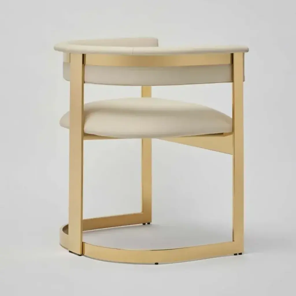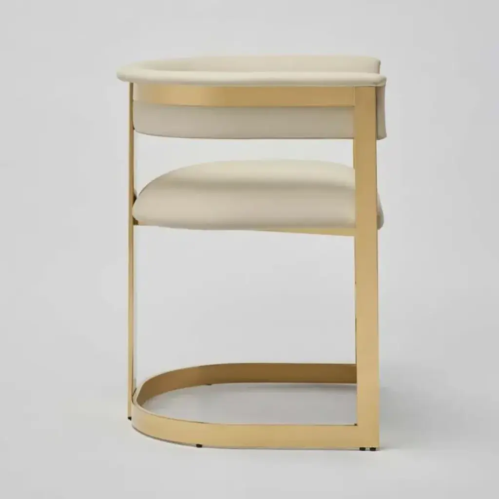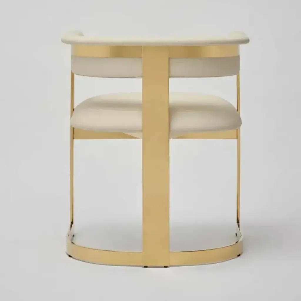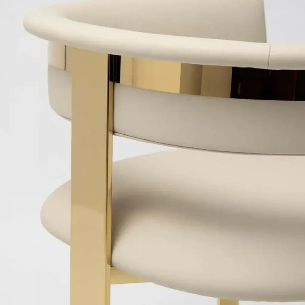 Introducing a fresh take on our beloved Darcy line, the Darcy II Dining Chair features a solid curved base complemented by a streamlined polished brass frame and buff cream leather upholstery. Genuine leather is a natural material. Variations in coloration and pattern are to be expected and add to the uniqueness and charm of each piece.