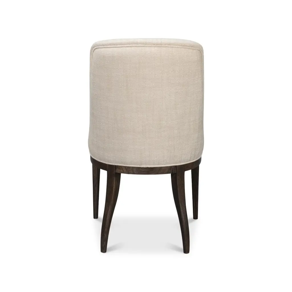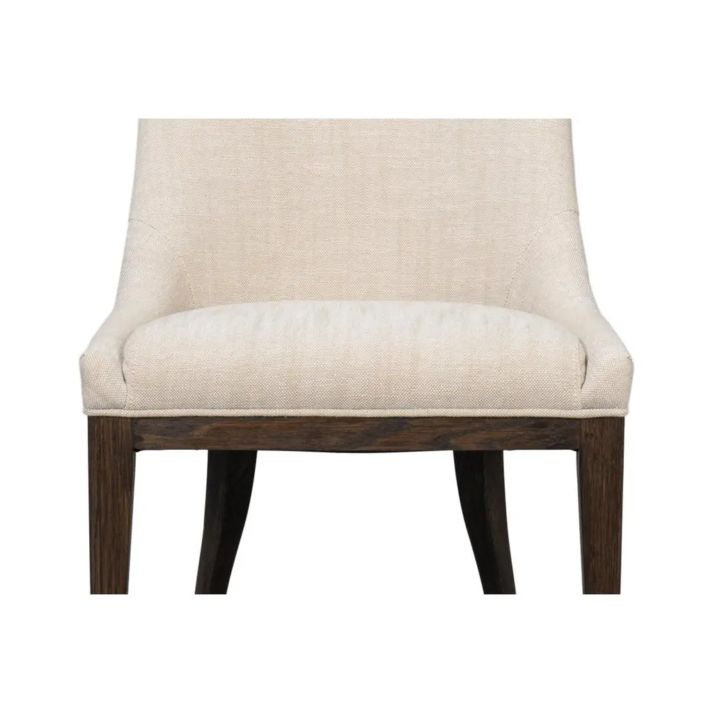 Crafted with a sturdy dark-stained oak frame, this classic chair showcases clean lines and refined sophistication, perfect for enhancing dining rooms or living spaces. The seat and backrest are upholstered in a soft neutral polyester fabric, providing both durability and a plush seating experience.Designed to blend seamlessly with modern, transitional, or classic interiors, this chair adds understated luxury to any space. Whether used as part of a dining set or as an accent chair, the chairs brings comfort, style, and lasting appeal to your home.Dimensions: 21" W x 25" D x 37" HSeat - 20" H