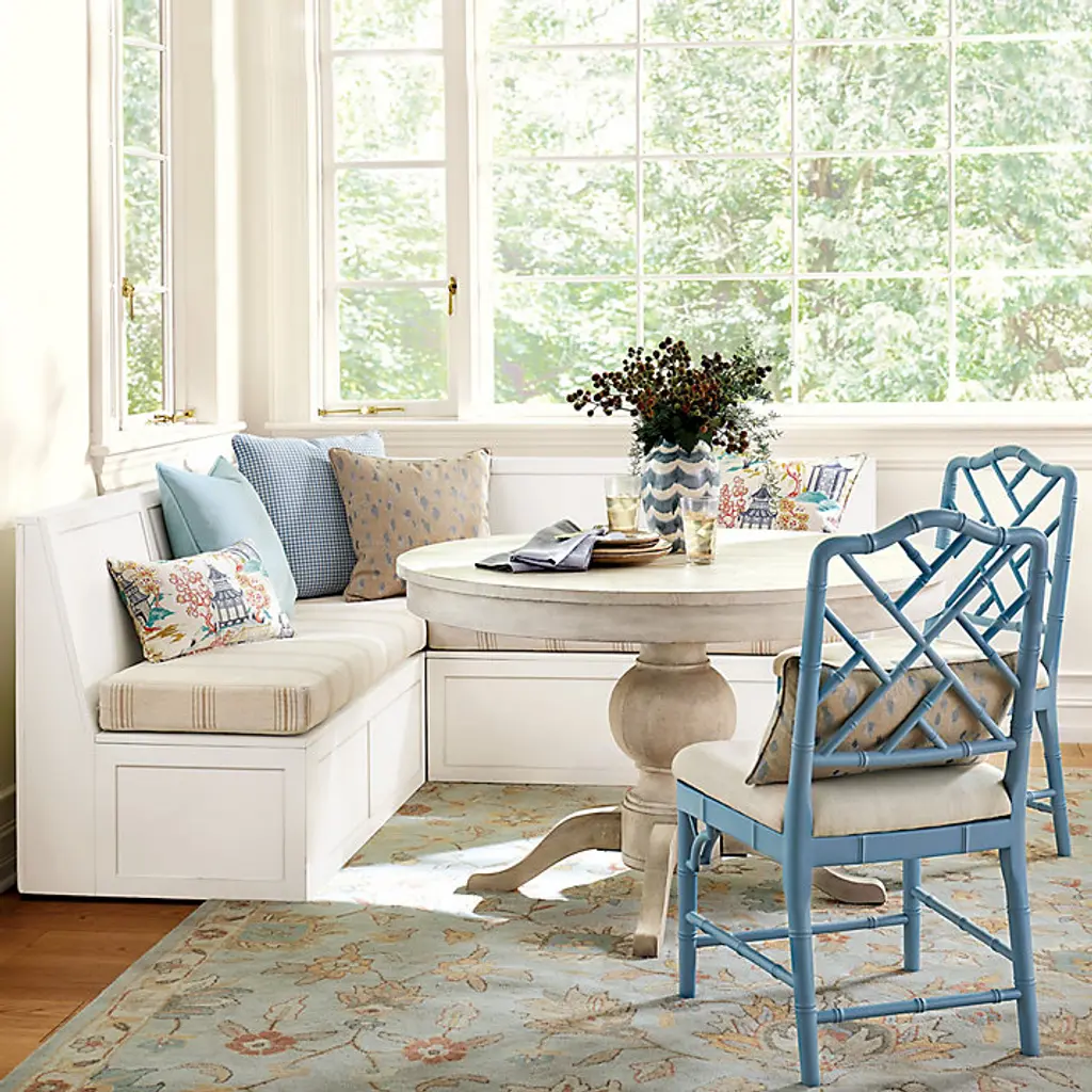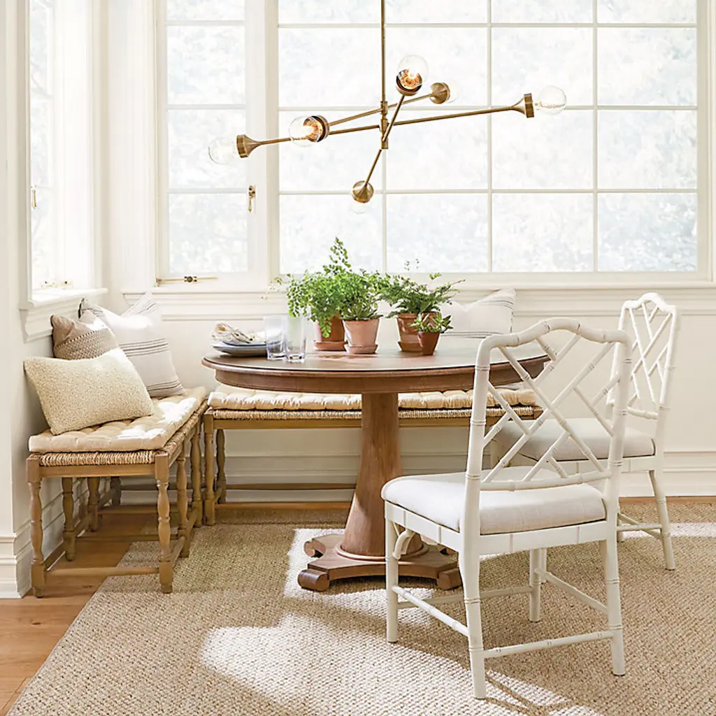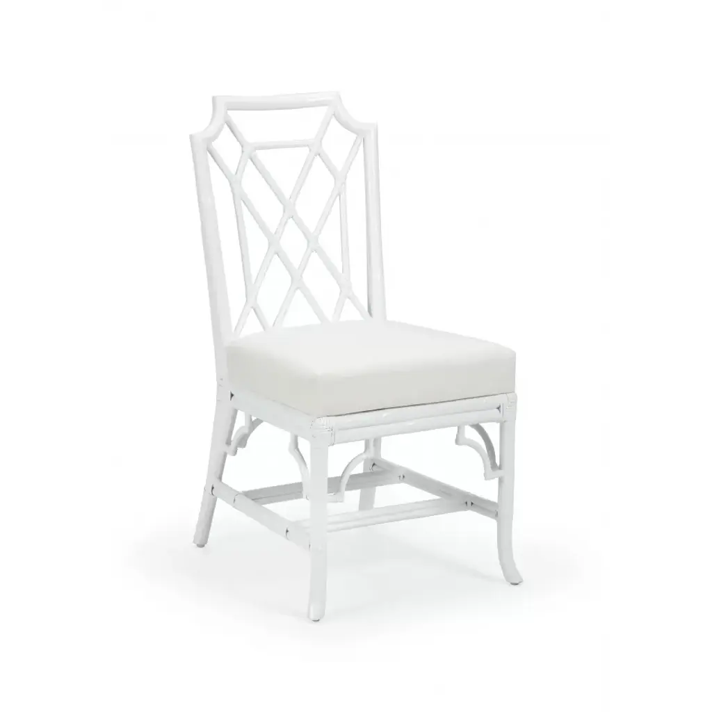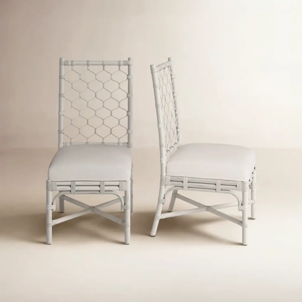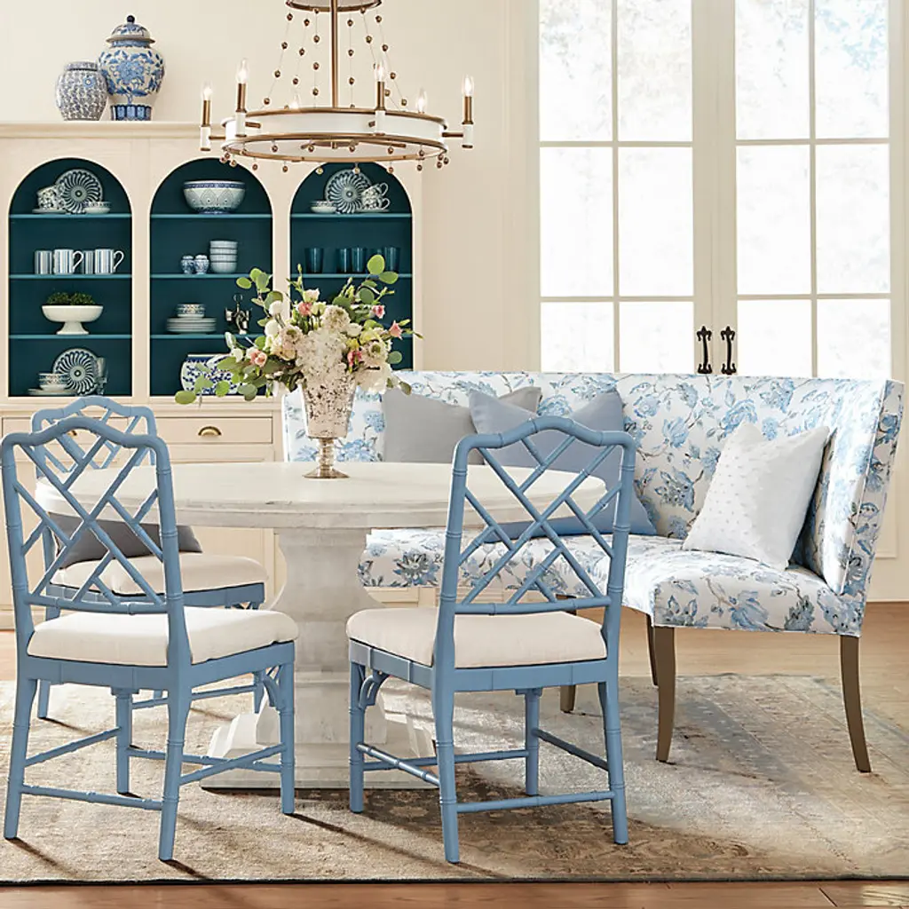Our Dayna Side Chairs capture the sophisticated soul of Chinese Chippendale styling. Solid beech wood frames are artisan crafted with classic fretwork hand finished with lightly rubbed, bamboo-inspired turnings. Richly padded slip seat is expertly upholstered in our cleanable, family-friendly Sandberg Parchment InsideOut performance fabric, a beautiful choice for spill-prone areas like the dining room, kitchen island and breakfast nook. Seat can be removed for easy re-covering in your favorite fabric from our gorgeous selection of more than 300 styles. Dayna Side Chair features: Ballard Designs Performance Fabrics by InsideOut features: