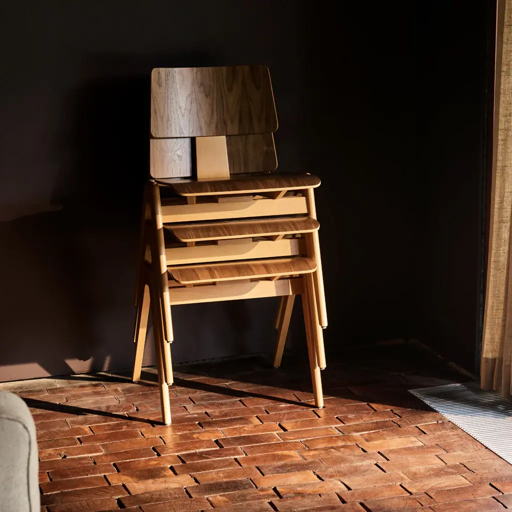 Designed with stackability in mind, the Daystak Side Chair by Robin Day is a lesson in functional utility and the beauty of simple forms. Exhibiting the designer's dedication to craft, the side chair's complex construction belies its visual simplicity and minimalist mid-century silhouette.