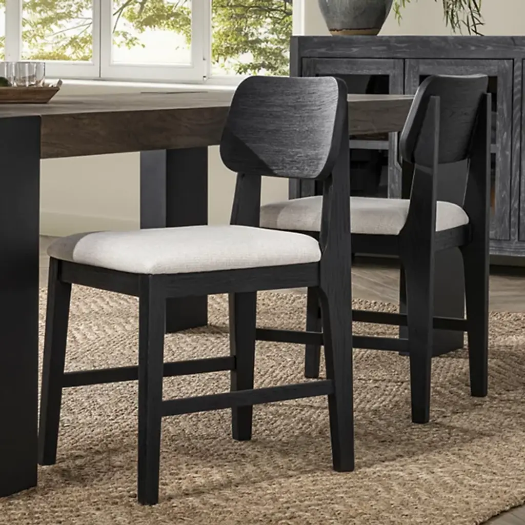 The Deavon Dining Chair, Set of 2 from Classic Home blends clean, modern lines with the natural warmth of wood, creating a versatile design that complements various interior styles. The contrasting materials and colors enhance the sleek aesthetic, adding sophistication to your dining space. Featuring polyester upholstery and plush soy-based foam cushions, these chairs offer both comfort and eco-friendly benefits. Their design ensures they provide both style and functionality, making them perfect for everyday meals or special occasions.