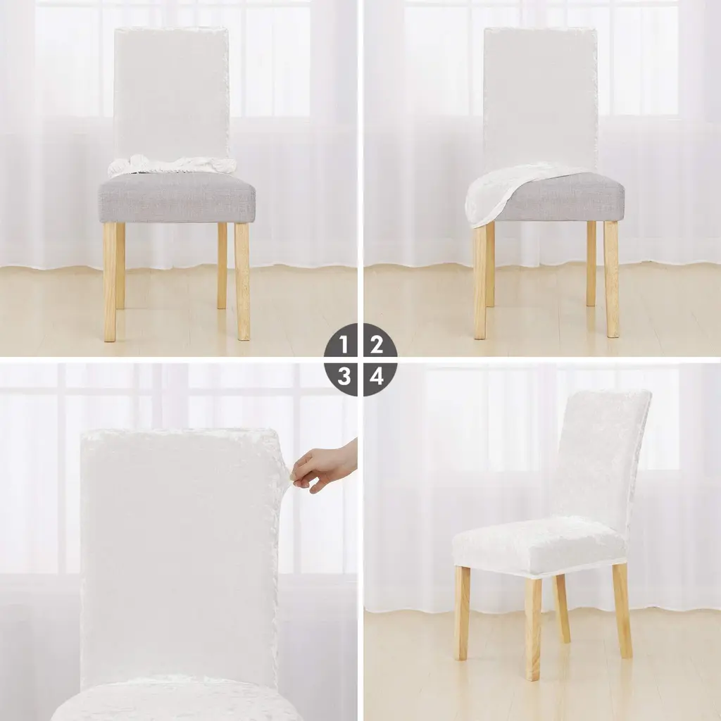 Deconovo Velvet Stretch Polyester Chair Slipcovers, Set Of 6 - White