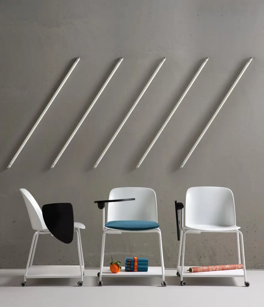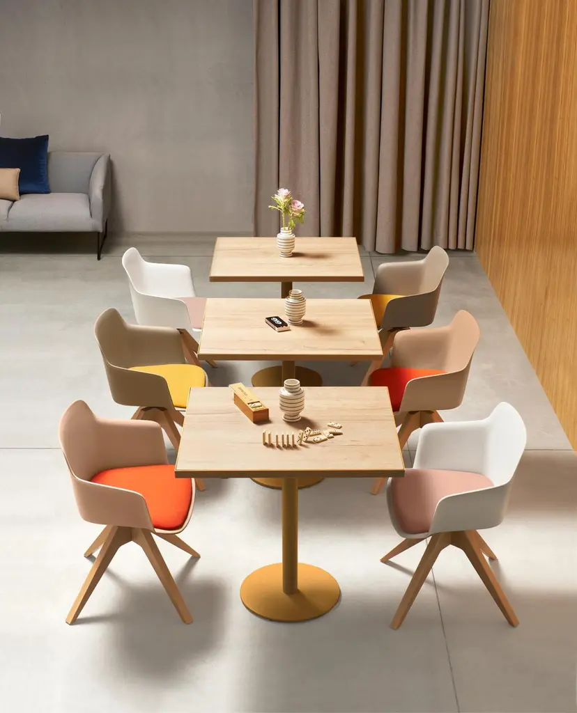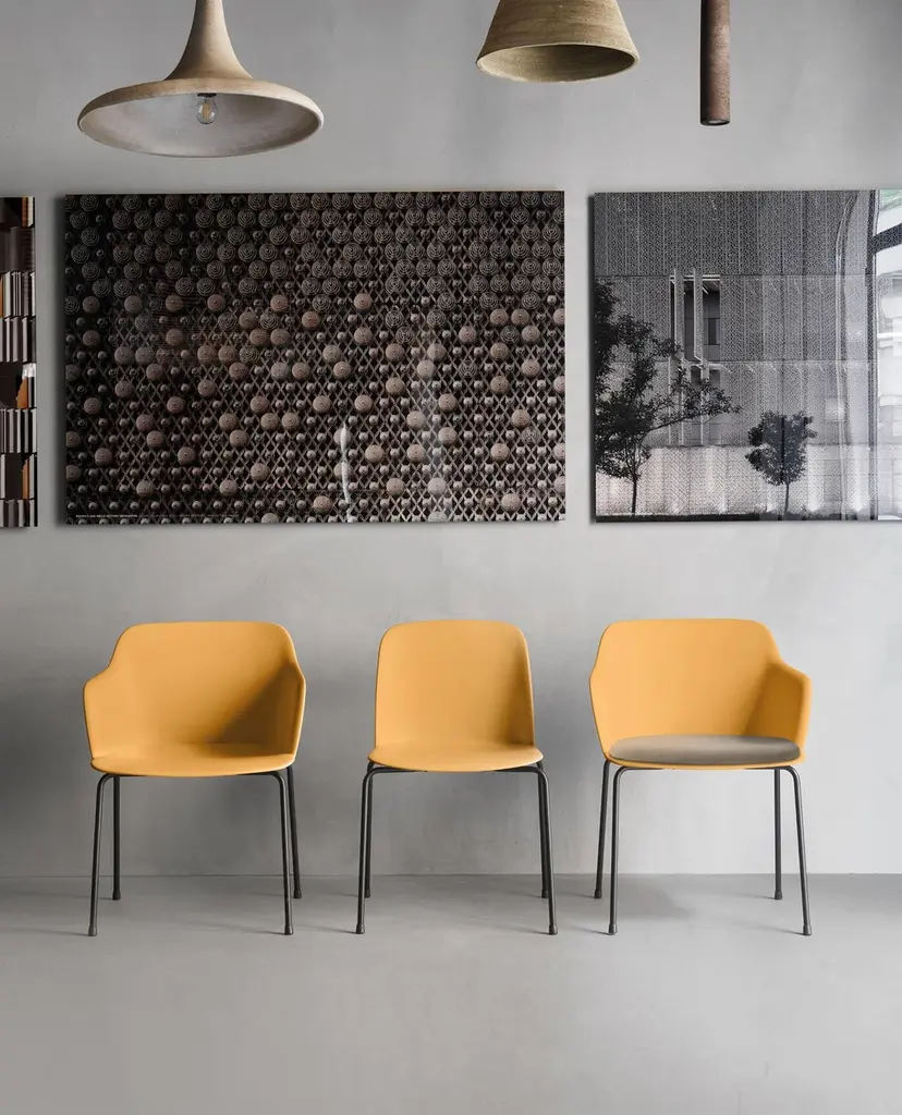 Deep Plastic Soft Armchair in Polypropylene Seat & Oak Legs by Quinti SeduteDesigned by Archirivolto DesignDimensions: D 52 x W 58 x H 78 cm.Materials: Polypropylene, oak, and upholstery. Available in different finishes, sizes, and material options. Dimensions and prices may vary. Please contact us.The chair Deep Plastic with polypropylene shell, with and without armrests, is available in an elegant color palette and provides several structures, fixed or on castors. The available bases make Deep versatile and able to be integrated into any space.Deep Plastic model without armrests has essential and compact shapes and satisfies a virtually unlimited range of applications in different segments.Deep Plastic can be ordered in simple polypropylene, or a comfortable cushion (fixed or removable) can be added. Deep Plastic is also available in its "Soft" version (internally upholstered).Great performances and countless configurations (with or without tablet) to satisfy various ways of use, such as schools, universities, and cafeterias. This model is available as a stool, a bench, or in a school version with integrated armrests and a writing table.Quinti was founded in 1975 and develops its activity in the mechanical sector as a producer of metal components for chairs and sofas.1993 is a turning point in the company's history: the arrival of Mirko Quinti begins an unstoppable development process that still lasts nowadays.Now Quinti produces office and home furniture such as executive and operative chairs, tables, upholstered armchairs, and sofas.Over the years, all the processes have been internalized, and the collaboration with famous designers has made the products internationally recognized. Above all, the Company organized itself with a young and competent staff, able to face every challenge with enthusiasm.Creating a new product means following every single moment with care and attention. We combine the search for original shapes with the desire to create practical and functional products. To the value of tradition and of well-done things, that represents our starting point, we add a marked sensitivity for the search for materials, for the combinations able to surprise, and for the care of details that make each product unique and personal.We apply all our experience to actively promote the protection of the environment, taking into account, already at the initial stage of product creation and development, all the variables so that they weigh as little as possible on environmental resources. The 75 kW photovoltaic system allows the complete autonomy of the two plants, guaranteeing maximum energy efficiency.