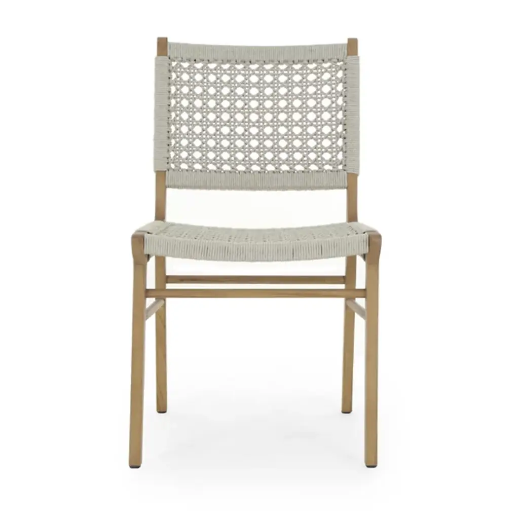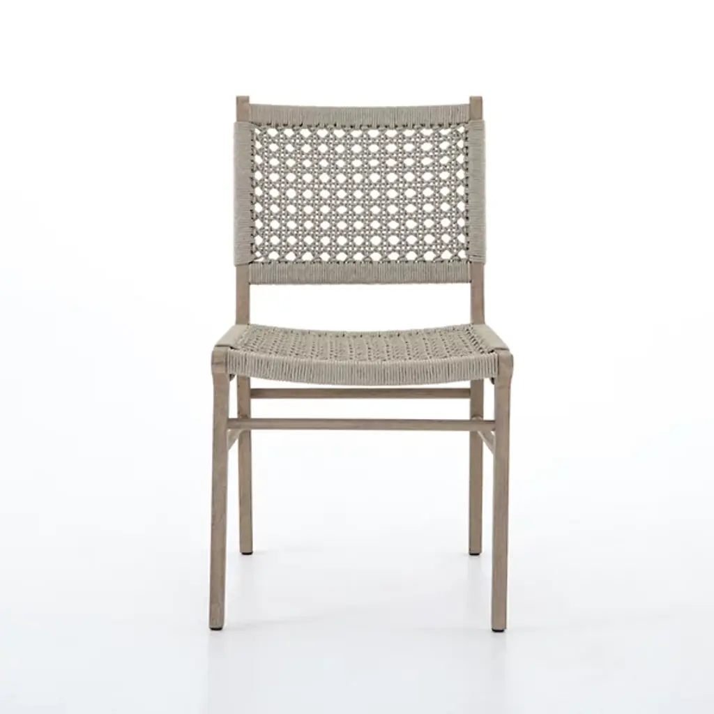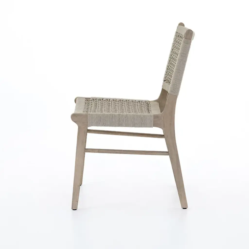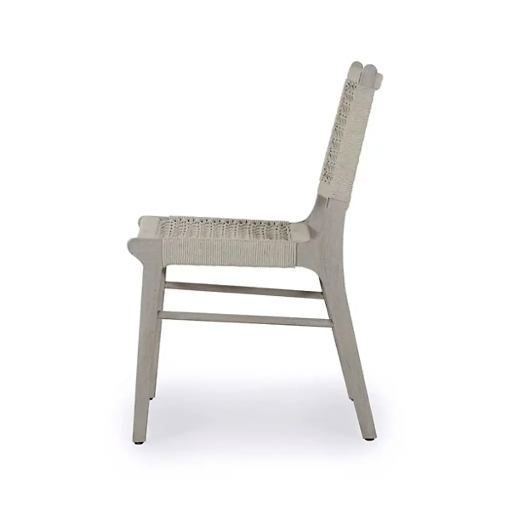 Effortlessly chic, whether it is placed indoors or outdoors. The Delmare Outdoor Dining Chair from Four Hands showcases woven ivory rope for a captivating texture-focused aesthetic. Its frame is crafted out of teak wood and features a comfortable seat and back of woven ivory rope. Covering or storing this piece indoors during unfavorable weather conditions or when not in use is recommended for added durability.