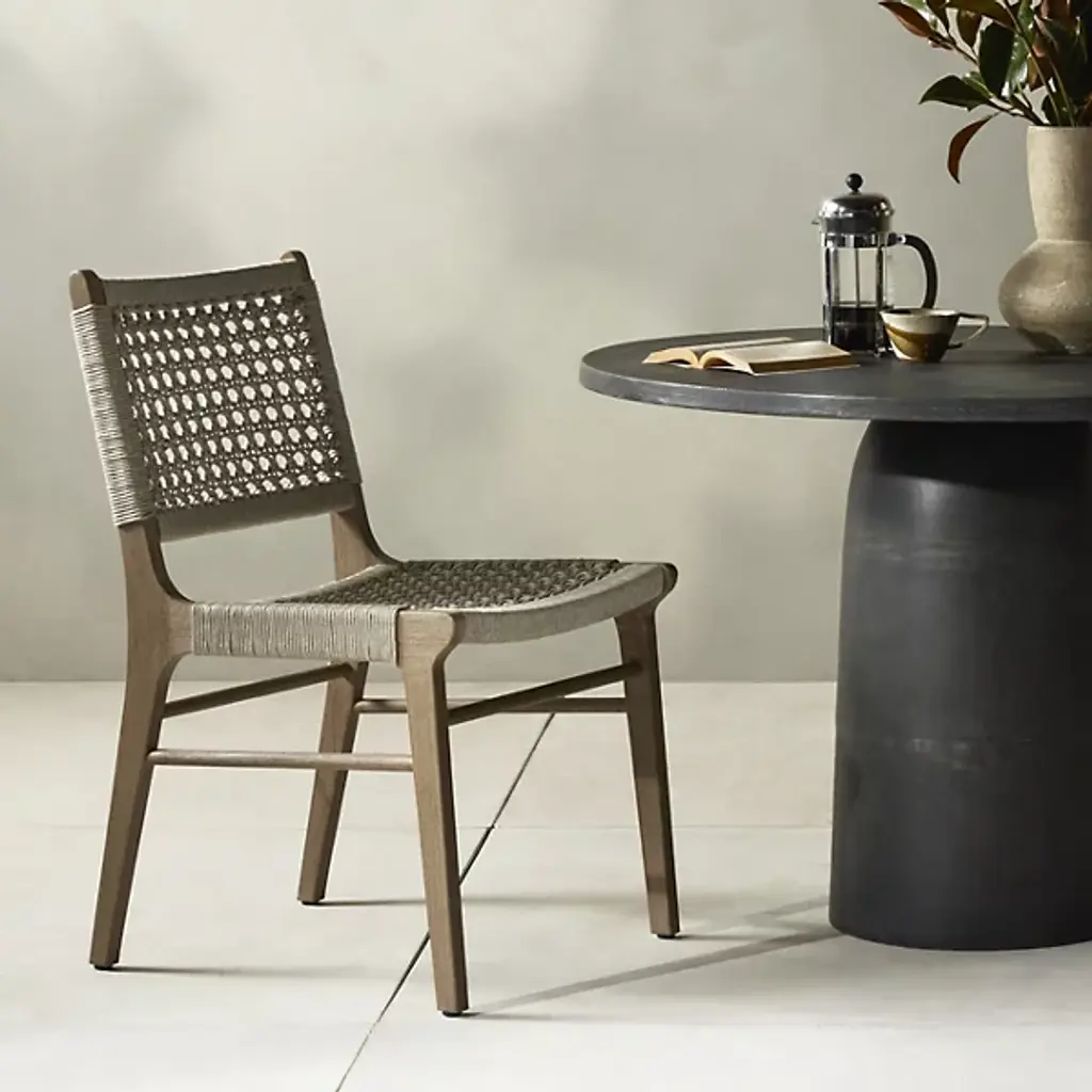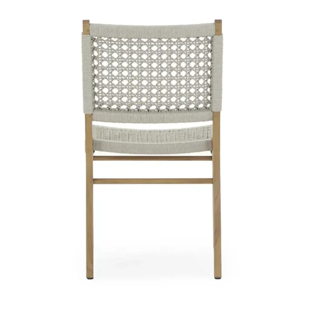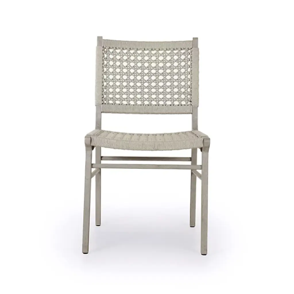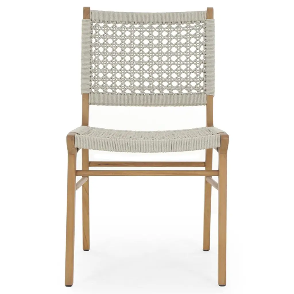 Effortlessly chic, whether it is placed indoors or outdoors. The Delmare Outdoor Dining Chair from Four Hands showcases woven ivory rope for a captivating texture-focused aesthetic. Its frame is crafted out of teak wood and features a comfortable seat and back of woven ivory rope. Covering or storing this piece indoors during unfavorable weather conditions or when not in use is recommended for added durability.