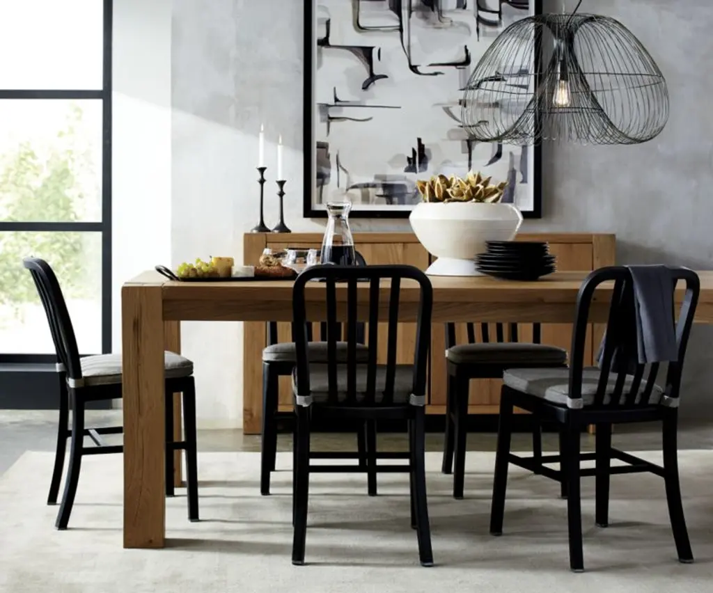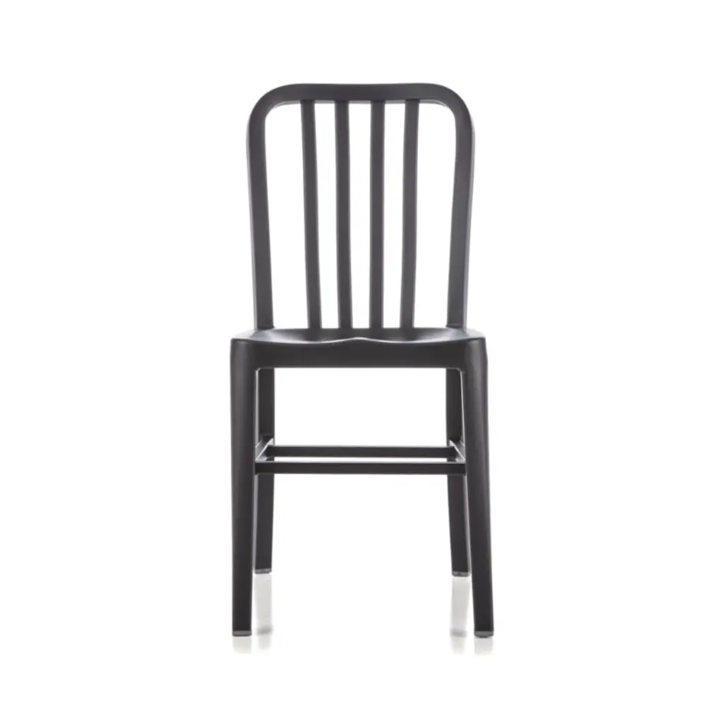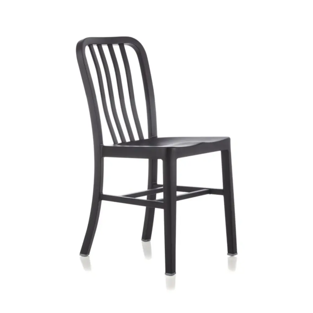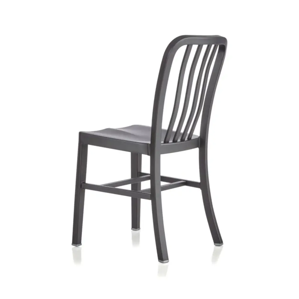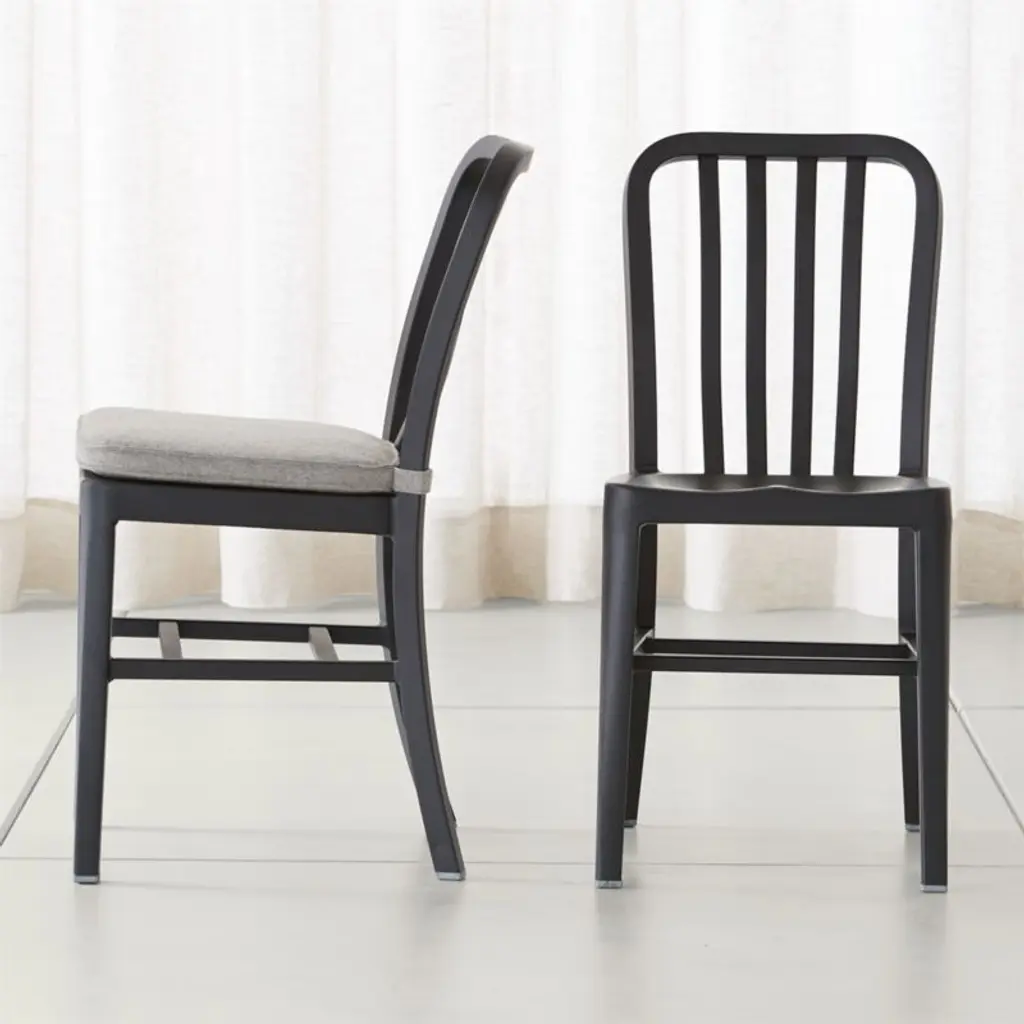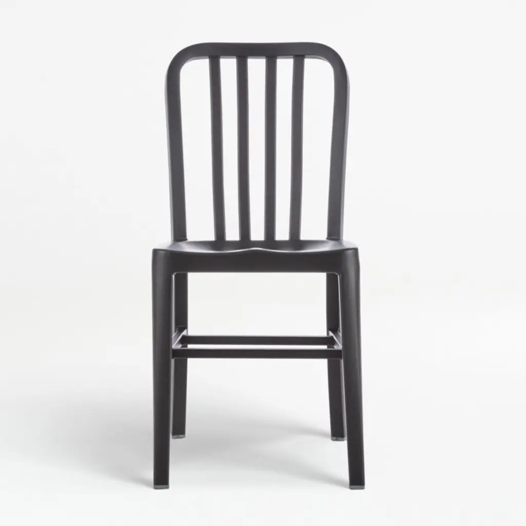 With its modern attitude and clean design, our aluminum Delta dining chair is a Crate and Barrel classic, now with a smart matte black finish. Contemporary with an industrial nod, the lightweight chair ensures a comfortable sit with a contoured back and molded seat.