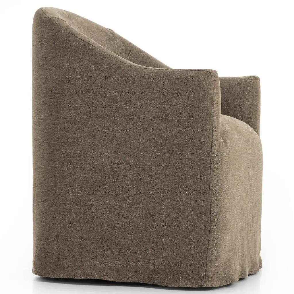 Desiree Modern French Coffee Brown Slipcover Dining Arm Chair