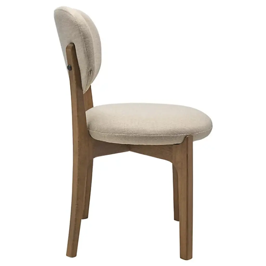 The Devin Dining Chair, Set of 2 from Surya, matches mid-century modern charm with contemporary appeal. Made in Turkey and starting with a sturdy beechwood frame, each chair features a round seat and a curving back for added comfort. Upholstered in soft polyester, each seat and back has a polyurethane foam fill, offering style and support. The paired chairs can elevate your dining space with their retro design and casual comfort.