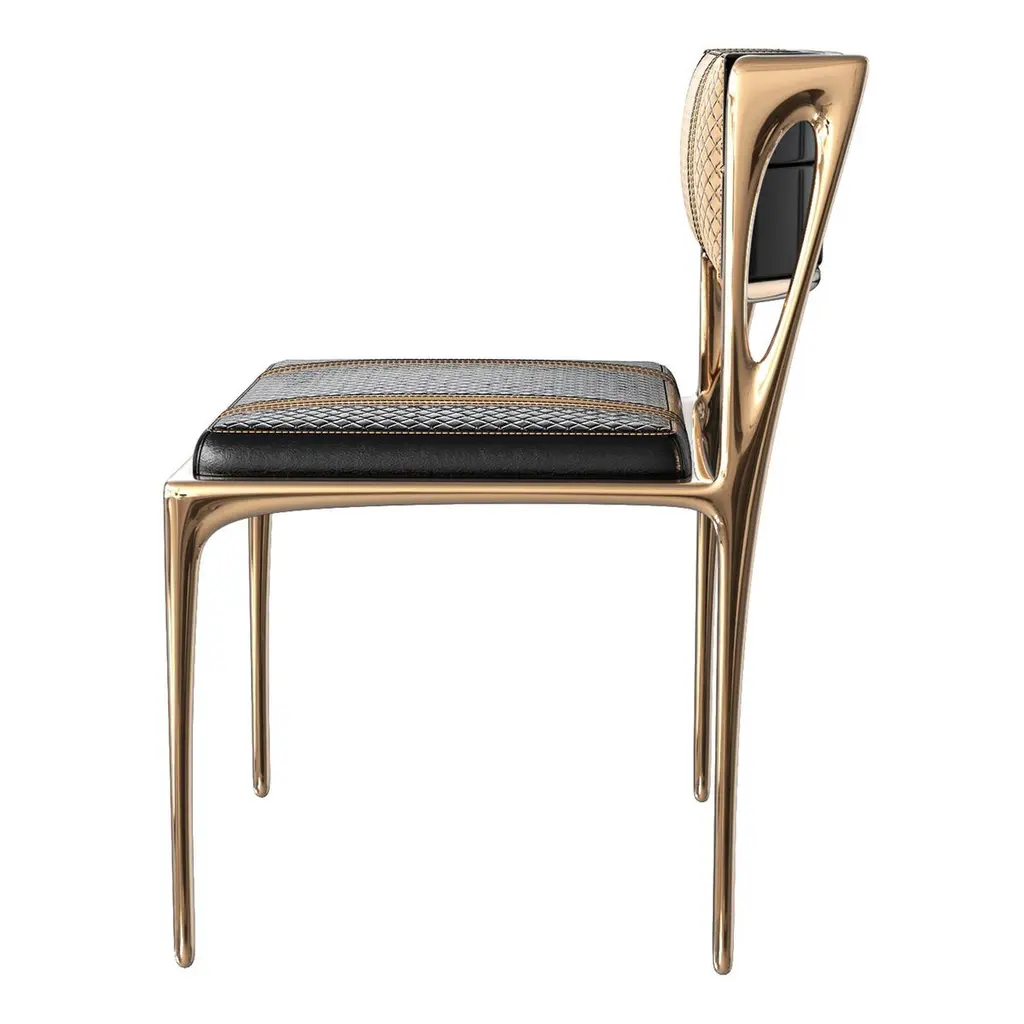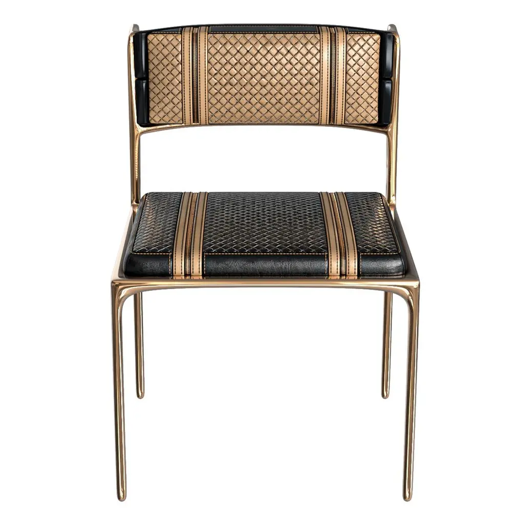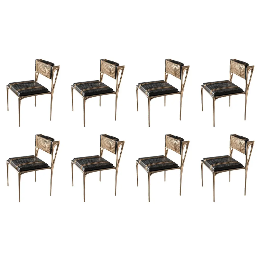 "Devonshire" Chair, Set of Eight. Bronze and Tailor Made Leather & Tailor Made Woven Leather, Istanbul. Custom color & sizing available on request.Designed by Hasan Samet Bizimyer, Ahmet Bizimyer.Design, Art, Innovation.Bizimyer Furniture Presents.Bizimyer Art / Design.The world needs icons. Those exceptional few that stand clear of the rest. For these individuals who inspire greatness, only the purest expression of Bizimyer Furniture will do. An icon like no other.Unparalleled elegance, beauty and presence.The purest of retreats. The most luxurious touches abound.The world’s finest A grade hides. Hand-crafted wood veneers. Distinguished people is cocooned by the finest materials and impeccable workmanship. This is a truly unique space, defined by unparalleled comfort.Refined design heritage. This work of art will add value to your life with the precious handwork of Istanbul's best masters."Bizimyer Furniture" is a "Bizimyer Art / Design" company. The design company was founded in 2006 by Hasan Samet Bizimyer.Hasan Samet Bizimyer focused on innovative designs and brought them to life.Now, via 1stDibs, for dear art lovers, it offers carefully crafted timeless and exclusive design furniture.We only sell through 1stDibs. Beware of imitation products. You will do the messaging with Hasan Samet Bizimyer.Our products are negotiable.