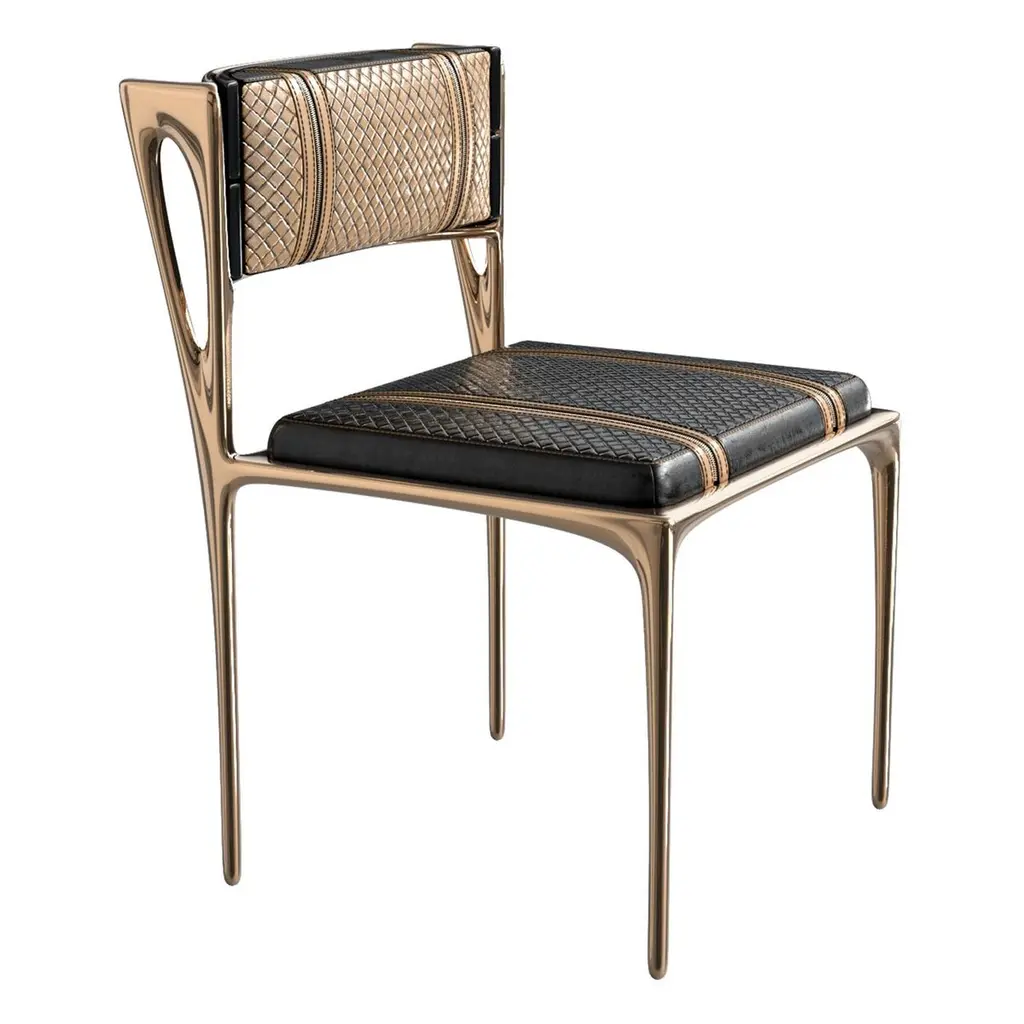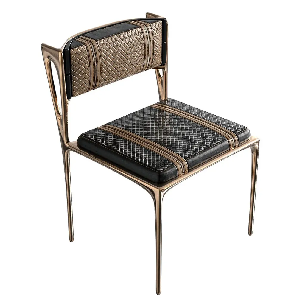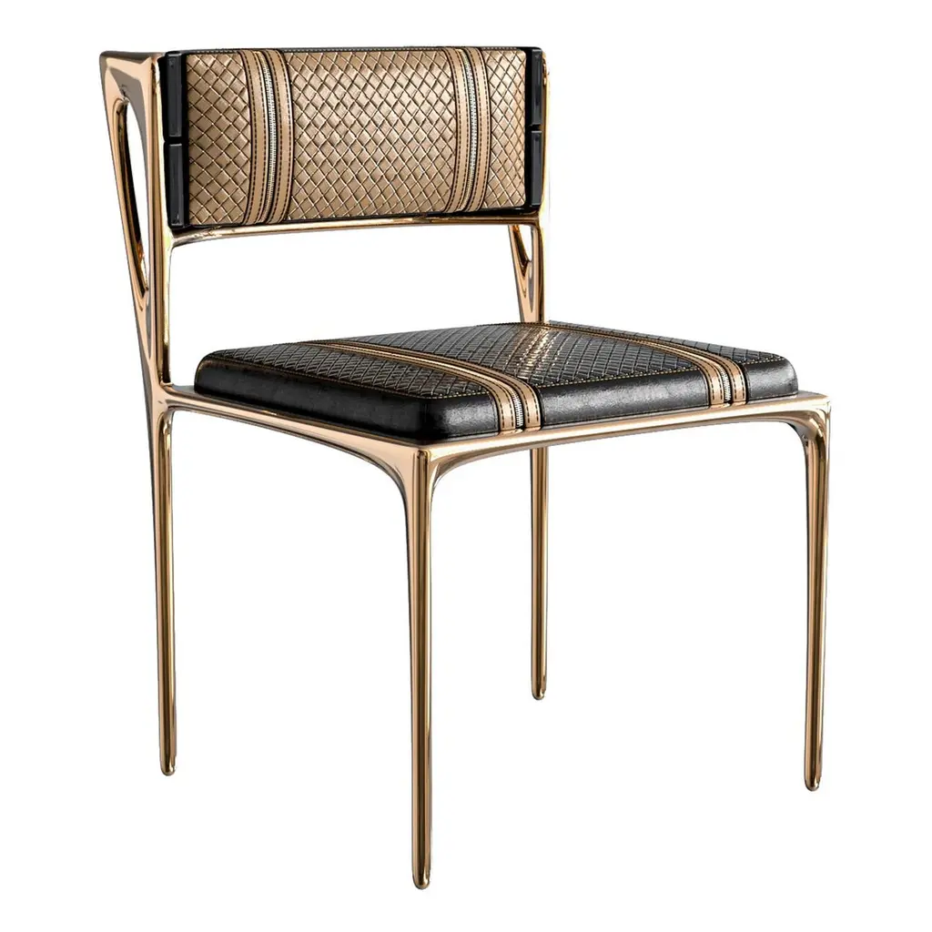 "Devonshire" Chair, Set of Eight. Bronze and Tailor Made Leather & Tailor Made Woven Leather, Istanbul. Custom color & sizing available on request.Designed by Hasan Samet Bizimyer, Ahmet Bizimyer.Design, Art, Innovation.Bizimyer Furniture Presents.Bizimyer Art / Design.The world needs icons. Those exceptional few that stand clear of the rest. For these individuals who inspire greatness, only the purest expression of Bizimyer Furniture will do. An icon like no other.Unparalleled elegance, beauty and presence.The purest of retreats. The most luxurious touches abound.The world’s finest A grade hides. Hand-crafted wood veneers. Distinguished people is cocooned by the finest materials and impeccable workmanship. This is a truly unique space, defined by unparalleled comfort.Refined design heritage. This work of art will add value to your life with the precious handwork of Istanbul's best masters."Bizimyer Furniture" is a "Bizimyer Art / Design" company. The design company was founded in 2006 by Hasan Samet Bizimyer.Hasan Samet Bizimyer focused on innovative designs and brought them to life.Now, via 1stDibs, for dear art lovers, it offers carefully crafted timeless and exclusive design furniture.We only sell through 1stDibs. Beware of imitation products. You will do the messaging with Hasan Samet Bizimyer.Our products are negotiable.