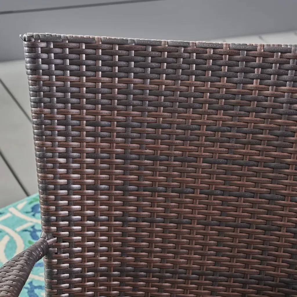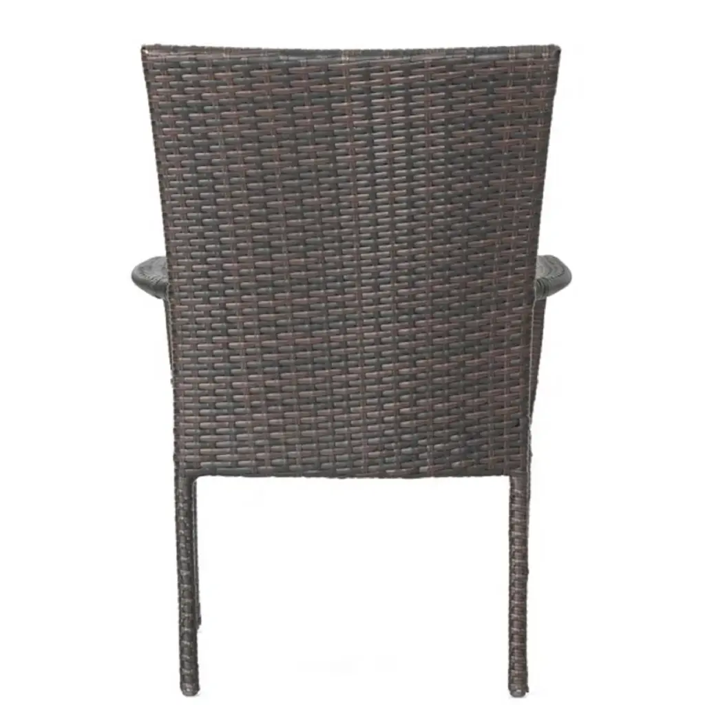 Outdoor Brown Wicker Dining Chairs are made out of one-of-a-kind rich, brown color wicker that will complement any nearby landscape. The all-weather wicker allows these chairs to last in any weather condition with little maintenance. These sturdy chairs are also stylish and stackable for easy storage.