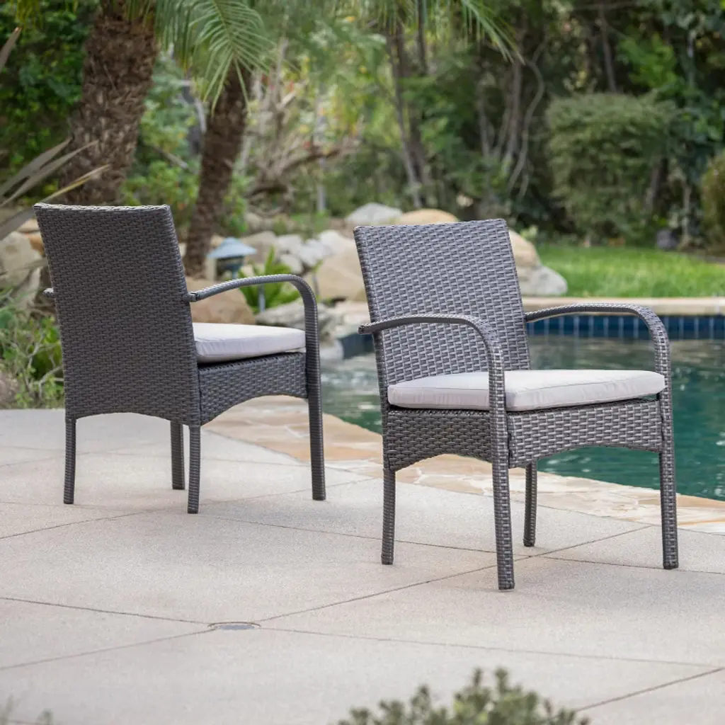 These outdoor dining chairs are truly one of a kind. This set is neutral in color to match any design elements already in place in your outdoors.