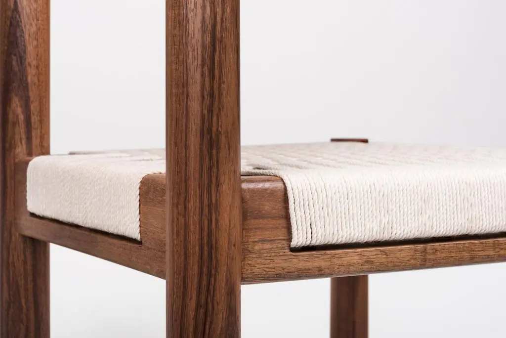 Inspired by the work of Luis Barragán, the Sáasil Chair features an honest construction with precise details. It is a comfortable chair, with a lightweight yet sturdy structure that frames the seat, handwoven by local artisans using cotton or nylon rope. It is available with weavings in a variety of colors.finish : waxavailable in: Caribbean Walnut_Our pieces have a finish based on natural waxes and oils that protect the surface, accentuate the grain and texture and preserve the warm feeling of the wood.All the wood that we work with to create our pieces comes from local "ejidos" (communal land) with responsible forestry management programs and certificates._Wood is a natural and organic element. It will vary in color and grain according to each wood plank’s unique characteristics and applied finish. The image shows only one hue of many, making each chair a one-of-a-kind piece of furniture.
